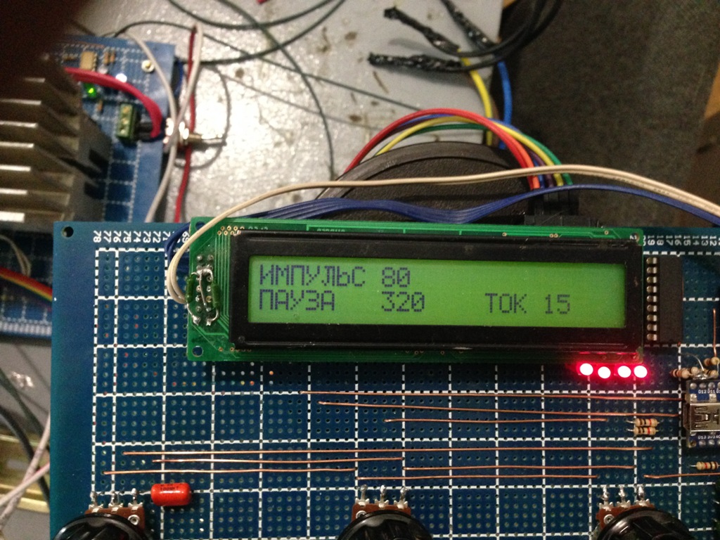 На блоке управления три крутилки 1-длительность импульса Тимп от 5 до 80 мкс 2-длительность паузы от 4*Тимп до 10*Тимп