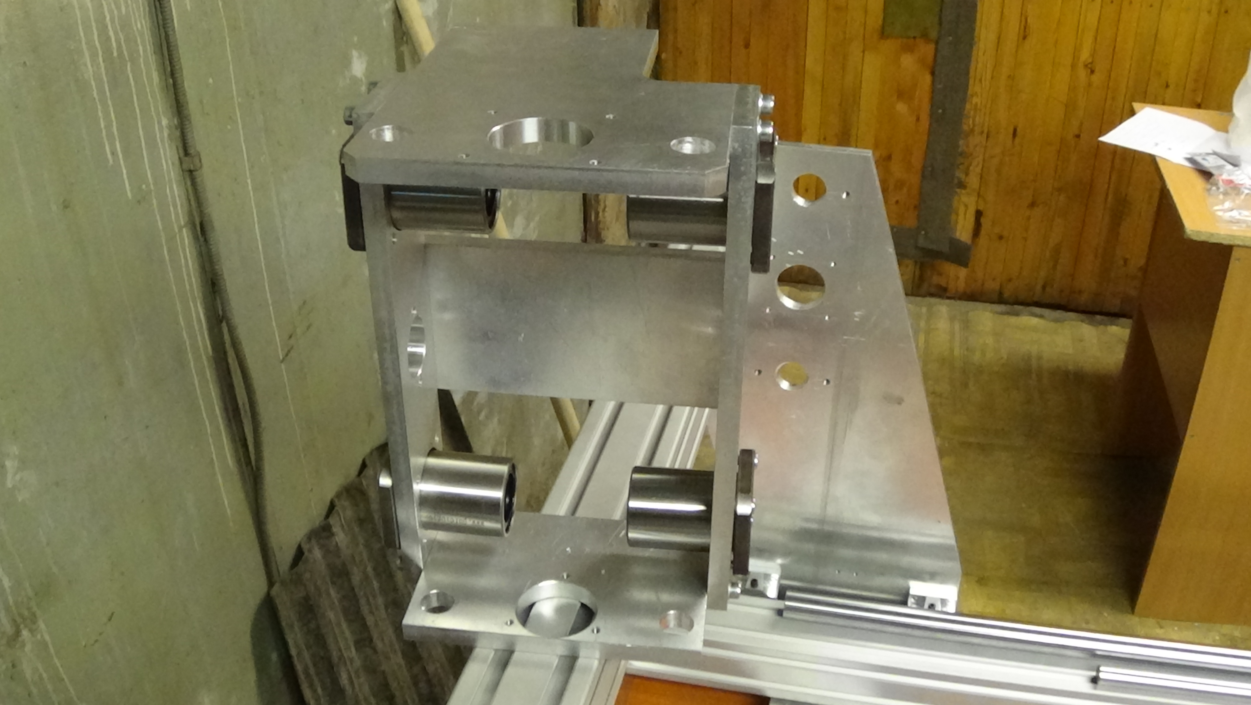Устанавливаем каретку и валы ф25мм. Фланцы для крепления валов и винты крепления фланцев подтягиваем слегка. Убеждаемся что каретка ходит легко и после этого затягиваем винты