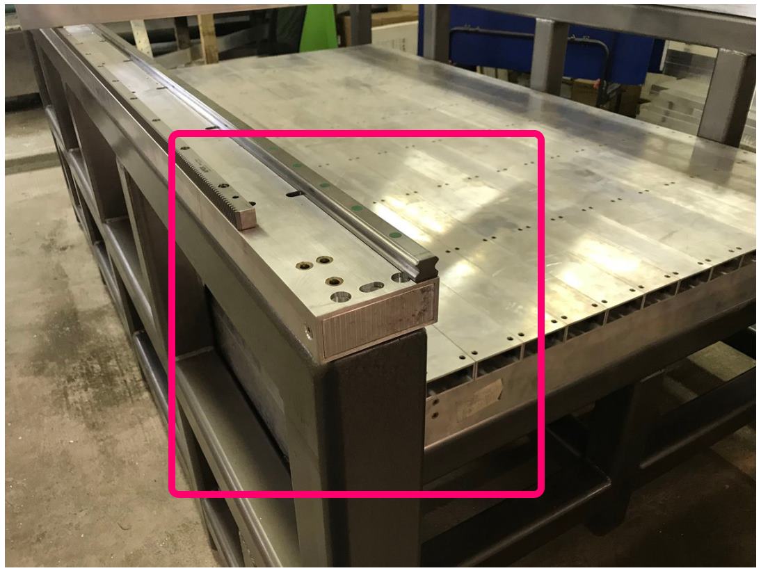 К стальной раме претензий нет. А вот дюралевая квадратная труба, к которой прикручен рельс с рейкой, выглядит жидковато на фоне такой рамы.