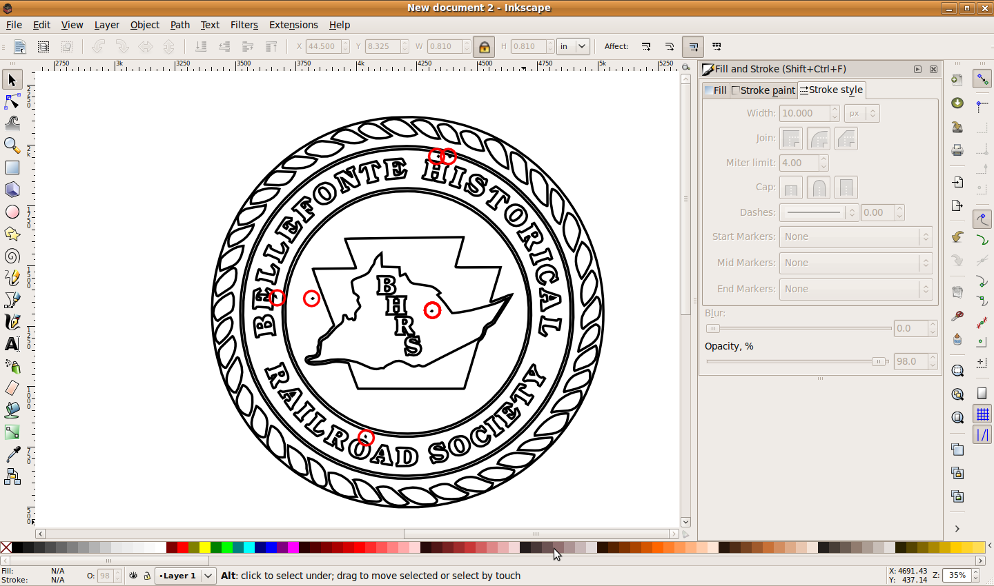 If we use 0.125 inch cutter first offset should be at 0.0625 inch it is exactly 5,625 px.