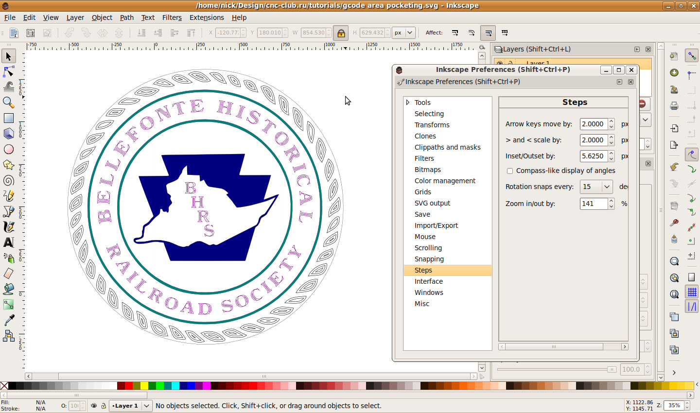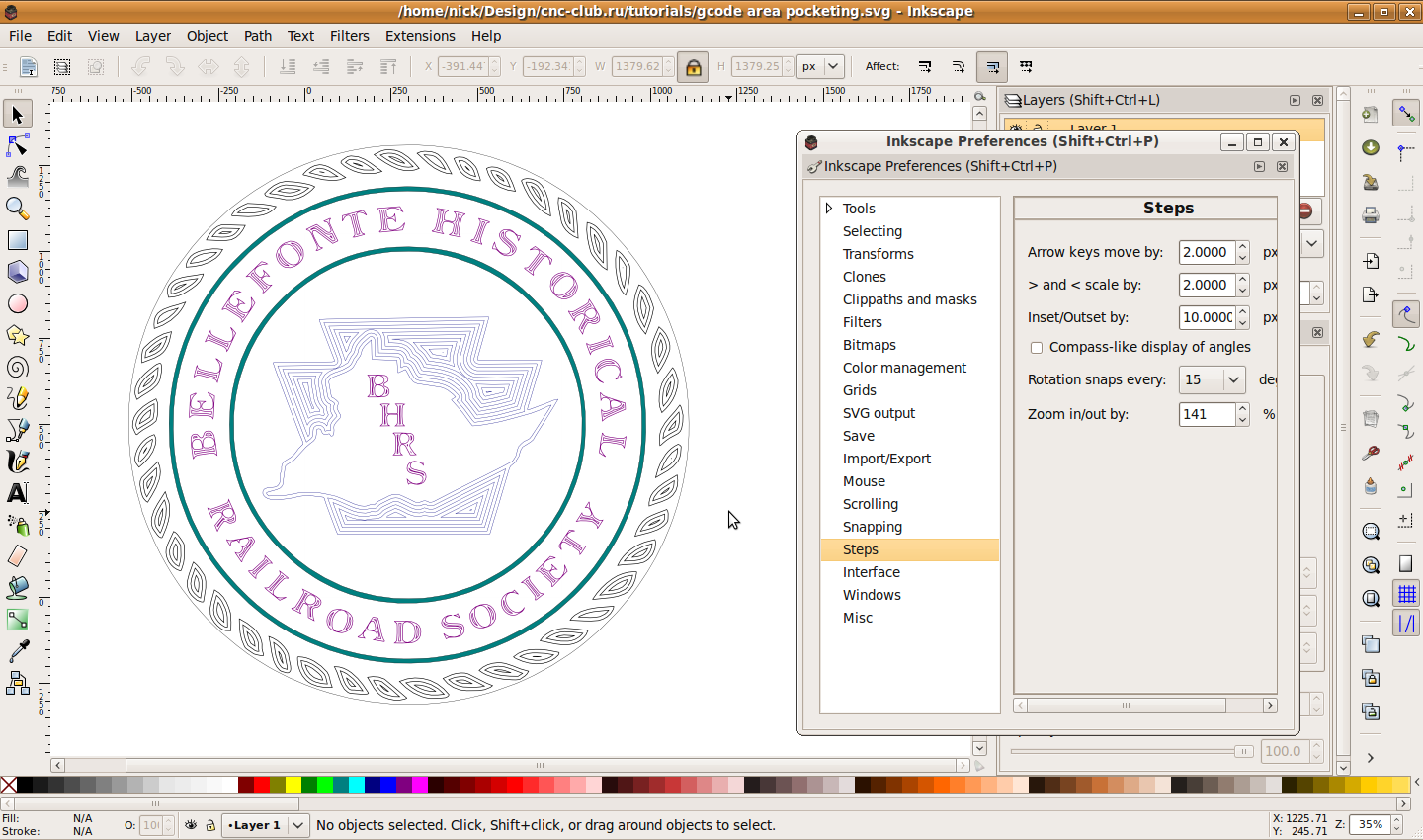 From now we can increase offset step up to 0.125in or 11.25px. But we can use smaller value from the one side it would increase loops number, but from the other we'll get better cut.