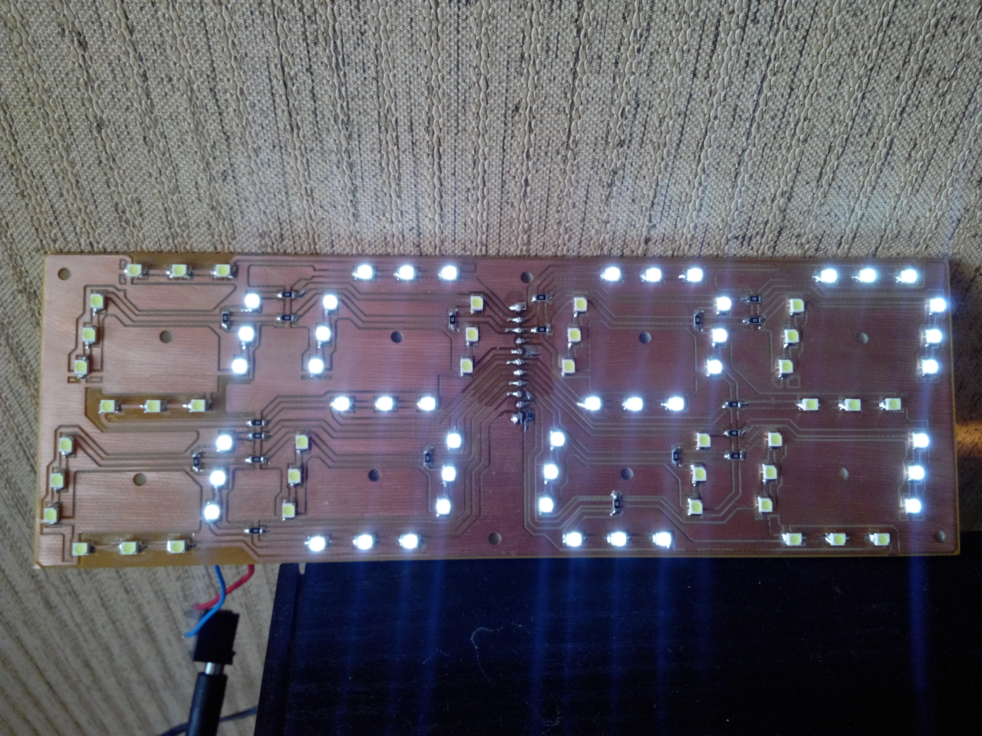 На фото видно неравномерность засветки сегментов – т.к. светодиоды немного придушены питанием ( в помещении темновато) . - но в реальности всё хорошо.