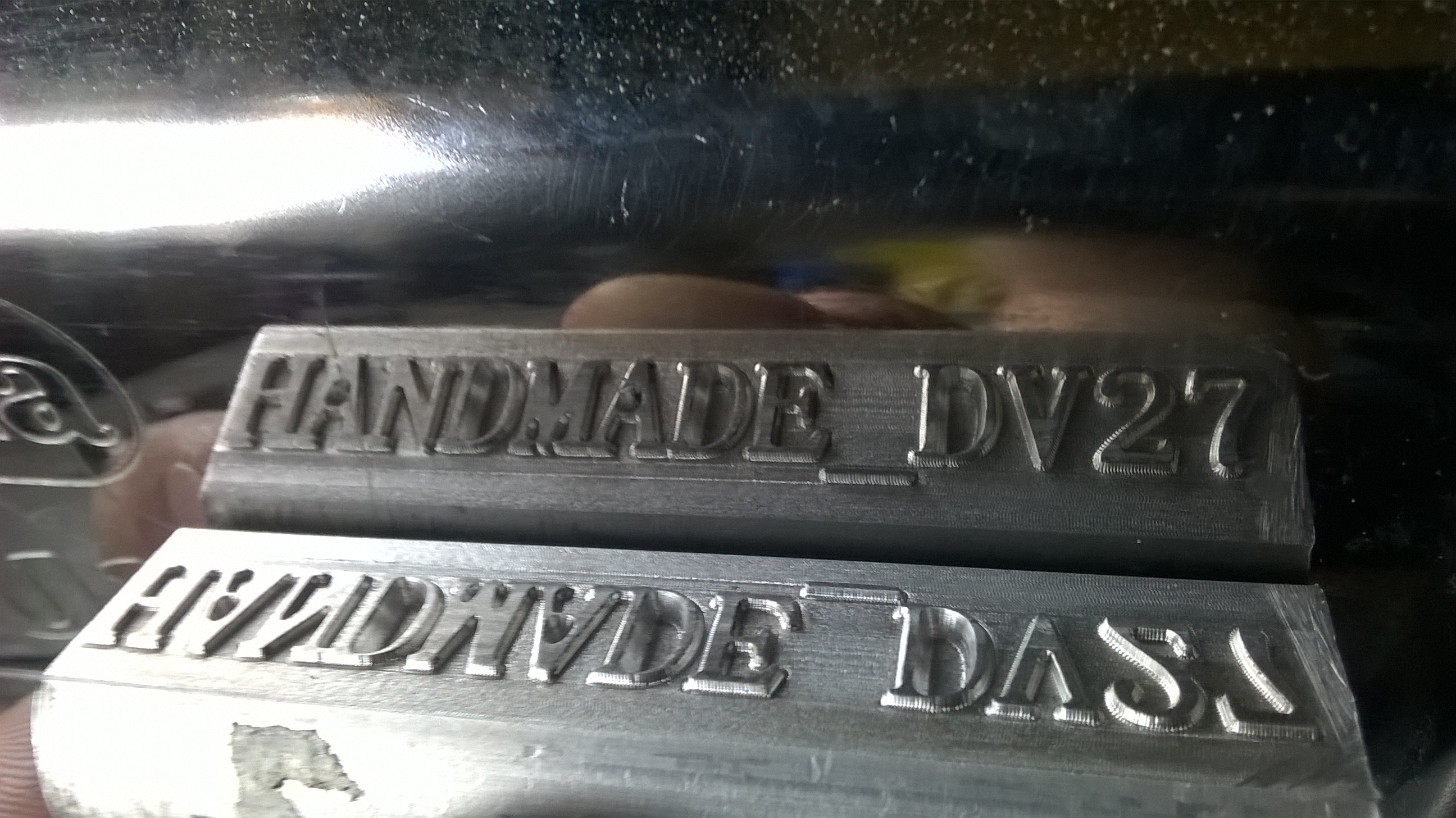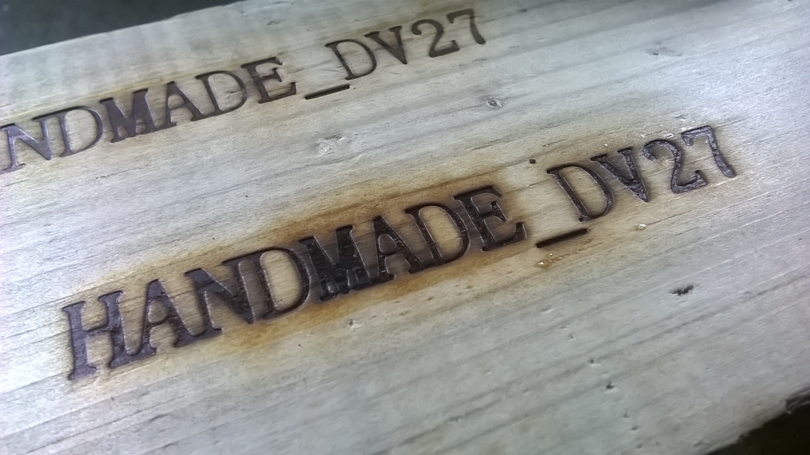 Решил попробовать сделать клише, для выжигания на деревянных изделиях. Вот что получилось, материал магний (анод для водонагревателей :hehehe: ) гравер 30гр. высота букв 1мм. мало, буду переделывать, нагрев газовой горелкой.
