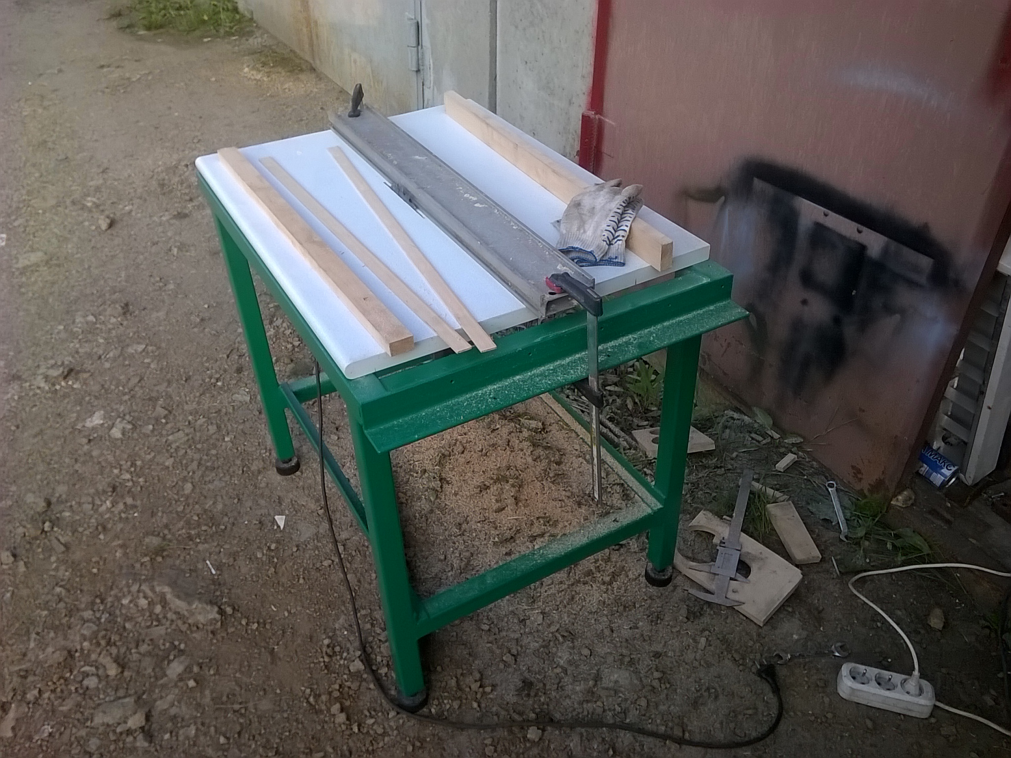 Понадобилось распилить пару дощечек, решил сделать себе стол для раскроя из старой дисковой пилы, столешницы, и обрезков железа.