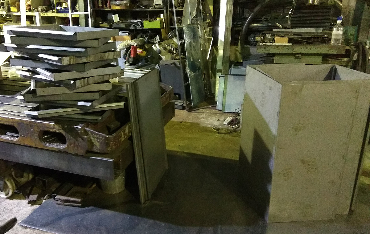 порезанный и погнутый металл - сам шкаф: ящики: вкладыши под фрезерную оснастку ИСО-40 (BT, SK)... сборка ящика... верхняя крышка сделана лотком, чтобы ничего не падало.. отбортовка высотой 15мм... готовый, покрашенный шкафчик: ну и в начале наполнения... Собственно это был первый вариант. он был полностью переработан, в плане технологичности сборки (уменьшение возможностей накосячить), уменьшения металлоемкости (как следствие цены), доработаны и убраны всякие мелкие косячки - на этом ящике предняя панель самого ящика не закрывает направляющие - просто не аккуратно выглядит по сравнению с токарным.. и не учел что направляющие реально отличаются от заявленных размеров в большую сторону - как следствие передние торцы торчат на 1-1.5 мм.. новый ящик сделал уже с ушами, прикрывающими направляйки и увеличил в глубину так чтобы эти самые направляйки не торчали...
