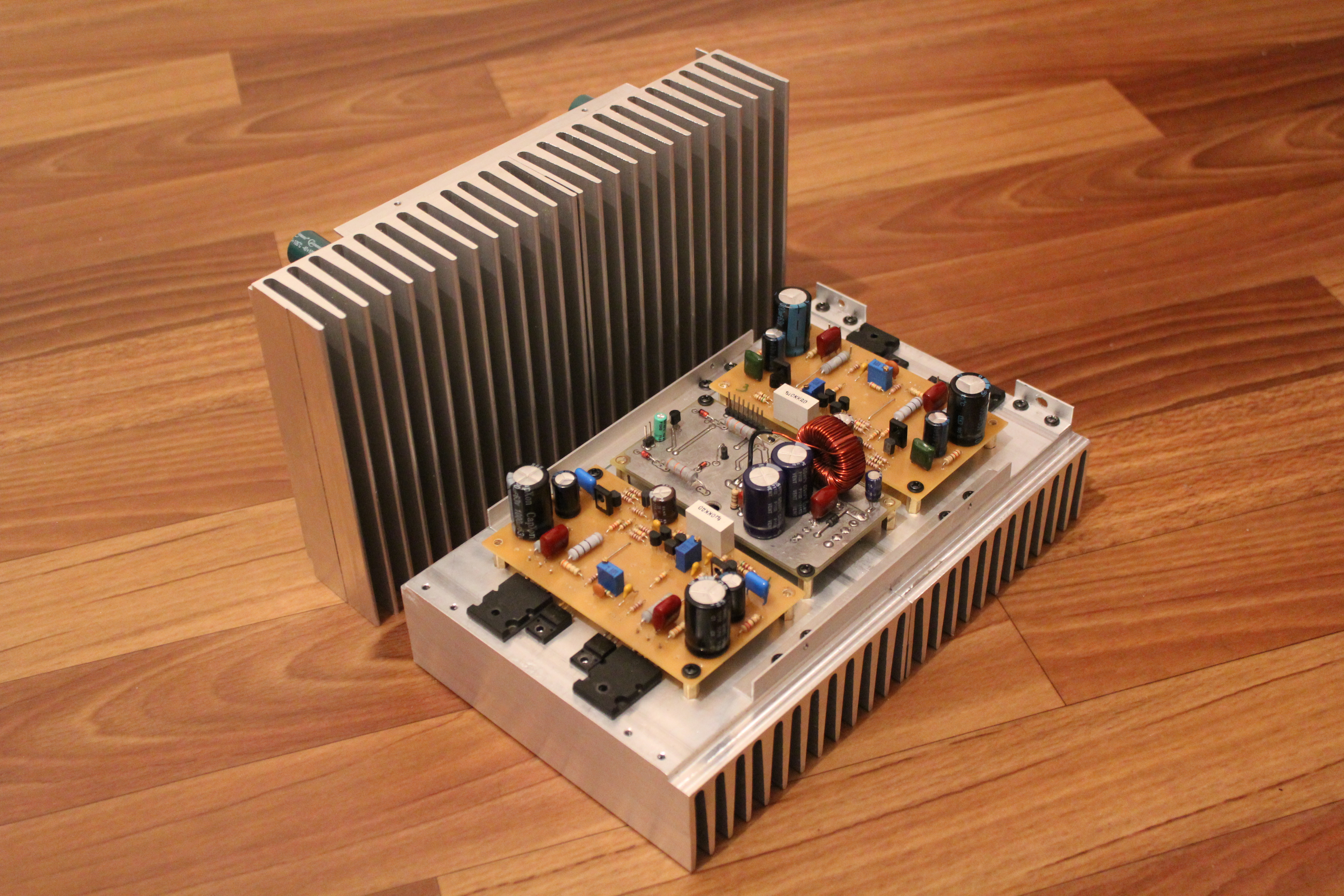 Только один усилитель на 250 Вт потребовал бы такого радиатора, а тут сразу 3 усилителя на радиаторе
