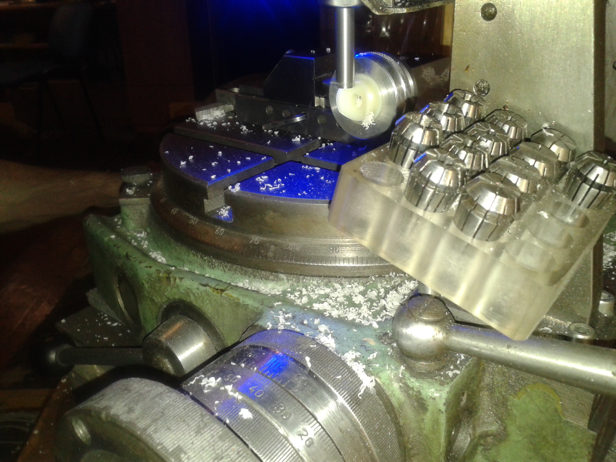 Расточил под инструмент отверстия и навтыкал для наглядности. На неделе выточу три патрончика ер 8 для мелких свёрлышек и будут они жить в одном из блоков.