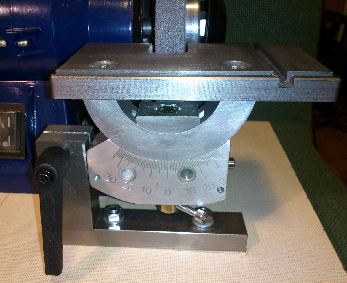 значительно удобнее подавать сверло на диск не двигая столик а поворачивая. вчера точил сверло, жестко закрепив подвижной стол и поворачивал оба стола вокруг оси крепления. получается удобнее.
