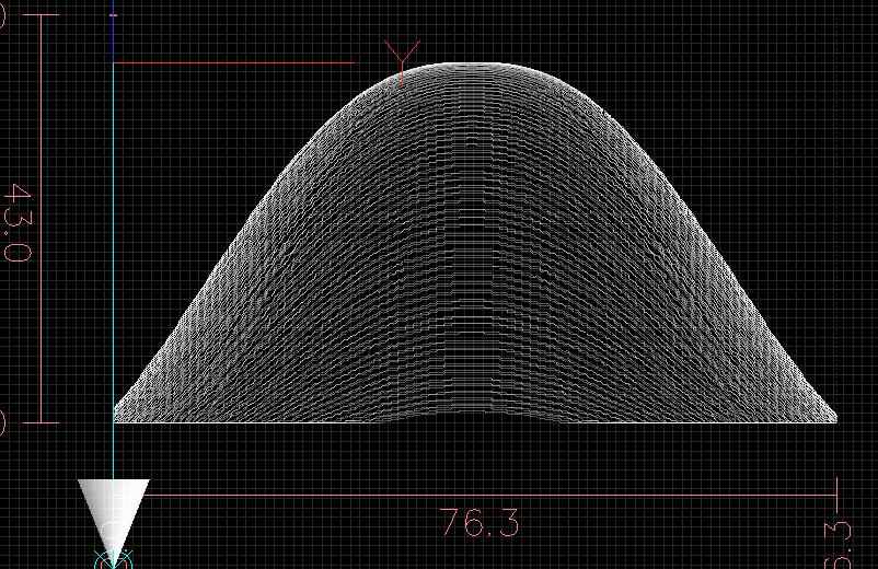 2. взять CAD, в нем создать эскиз, и отрисовать эту пирамиду как набор дуг, соединенных между собой касательными. У дуг есть радиус, точка начала сегмента и точка конца (она же - точка начала следующей). Для создания g-code этого достаточно - по g0 едем в начальную точку на начальной высоте. Затем командной G2 едете в конечную точку сегмента на высоту конца сегмента. Этот метод будет проще, чем п. 1.