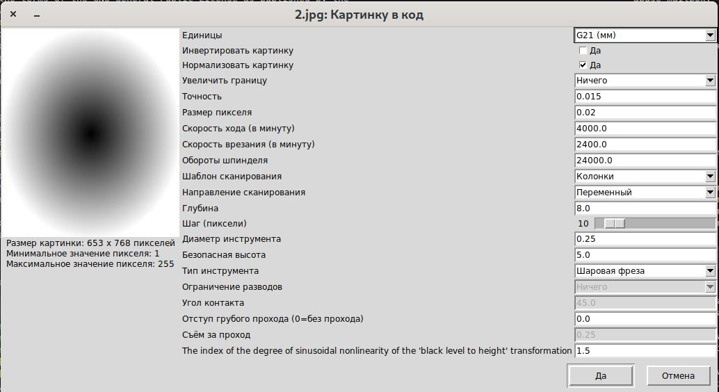 Однако на примере обработанной им картинки скажу, что похоже на тривиальное преобразование черноты в высоту, как это делает image2gcode, т.е. никакой магии и только маркетинговый туман. ДРугое дело, image2gcode выдает облако точек как команды G1, а это еще надо научиться использовать, превращать в сетки и пр.