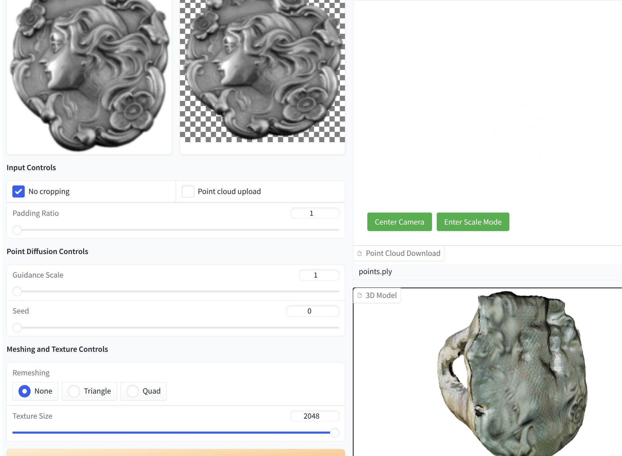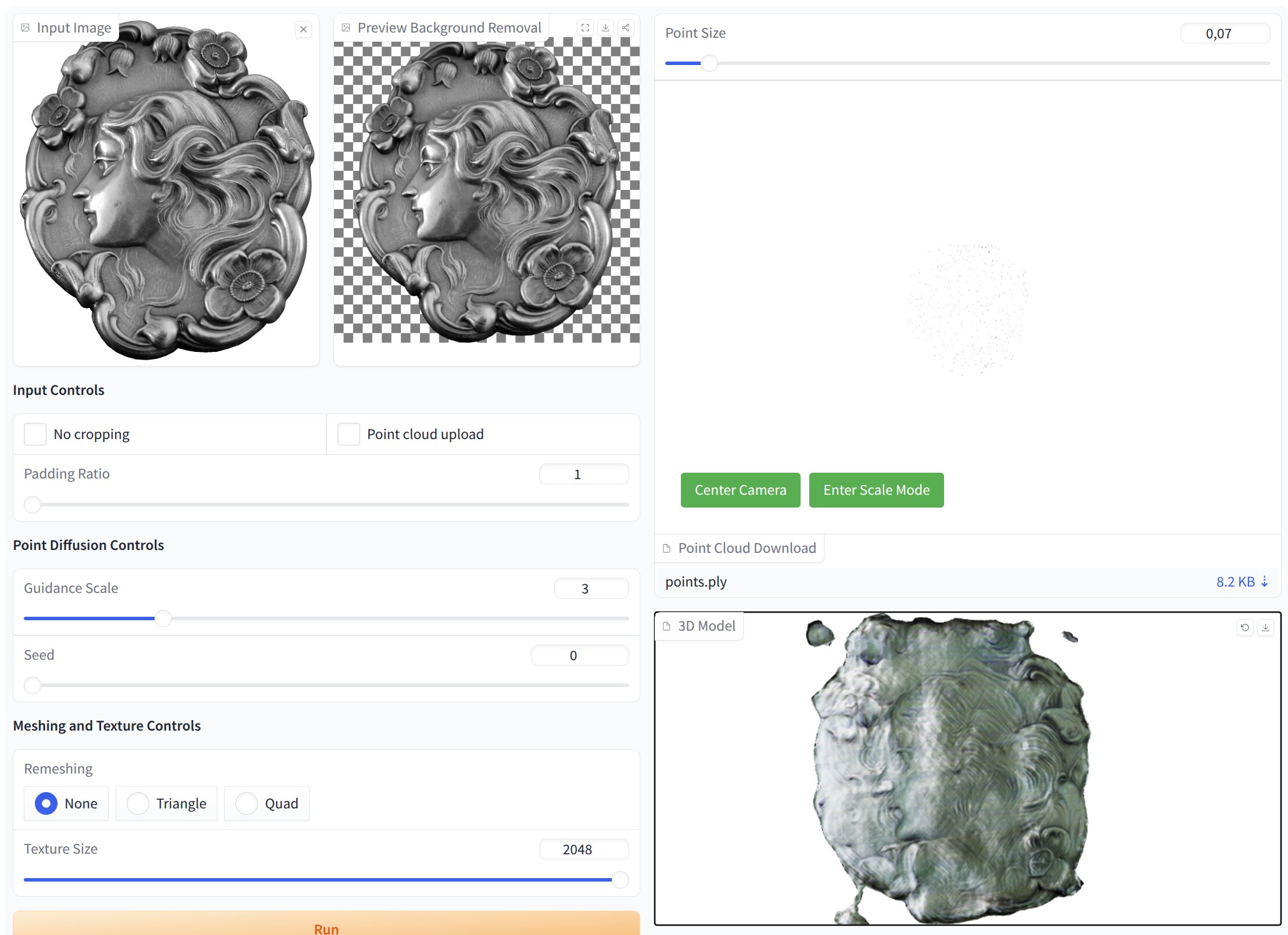 2. SPAR3D с веб-интерфейсом и как-то, но работает, создает модели до 2048*2048. https://huggingface.co/spaces/stability ... t-aware-3d. Женщин с четырмя грудями - запросто. Создает файлы вида gbl (большие) + hdr (средние) + ply (маленький), и чем их есть?