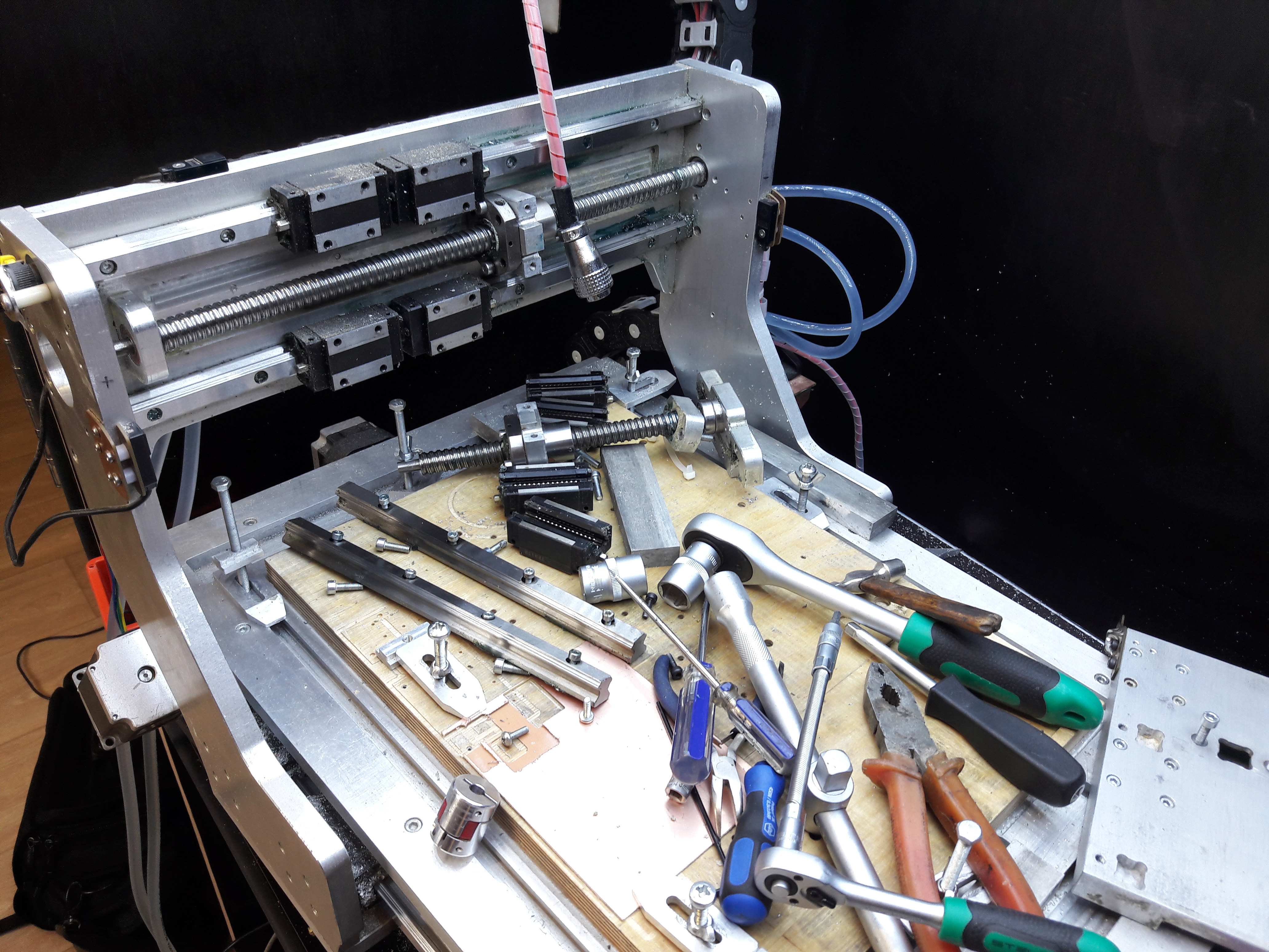 На днях разбирал свой станок в поисках проблемы люфта. Долгое время не давала покоя проблема, которая проявлялась как легкое несоответствие размеров выпиленной детали к эскизу, особенно окружности. Так окружность приобретала легкий эллипс - для размера окружности 20мм показания прыгали от 19,75мм до 20мм, на одной детали. Кроме того, стабильно на всех окружностях был виден след от фрезы в момент входа\выхода - эдакая еле заметная вертикальная канавка.