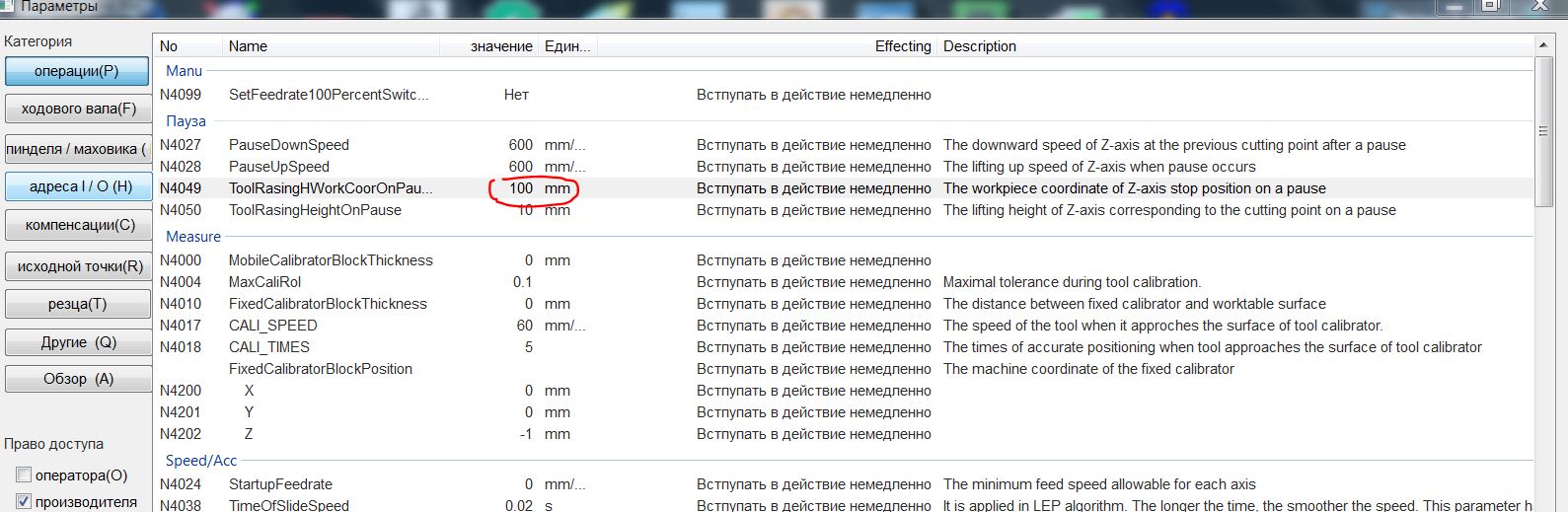 position in mach. coordinate. > Варианты подъема действия оси Z, когда указана пауза. Доступны следующие значения: 0: поднимите указанное значение; 1: перейти в указанное положение в координате детали; 2: Перейти к указанному положение в мах. координат. За картинки спасибо. Это меню Shift + Ctrl + Alt + дабл клик (по чем то) поправте меня если не сложно. Единственное что смущает это русский текст. Это точно 5.5.60 ?