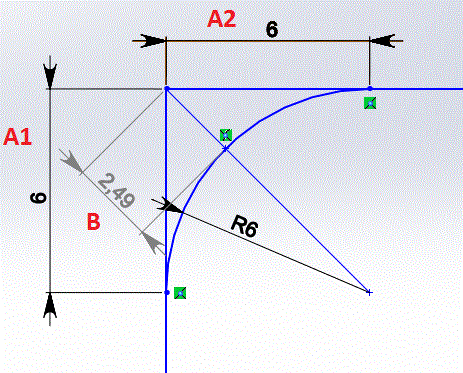 у него 5х осевой станок по граниту, делает столешницы на кухни\ванные, в которых вставляет умывальники\раковины, у них радиус на углах. говорит что в Автокаде делает радиус углов чуть меньше чем нужно а потом допиливают ручными машинками, пока раковина не влезет, и все потому что не может четко замерить радиус угла, так как четко увидеть место, где прямая переходит в радиус, практически не реально (А1 А2), но хорошо можно поймать размер В (приложив уголок и линейку)