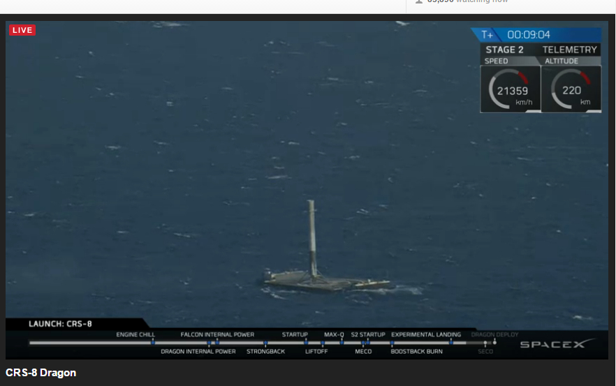 Вчера запустили ракету с грузом для МКС, а первая ступень от ракеты успешно вернулась, причем села на платформу, которая находилась в море. До этого они её разбивали в хлам.