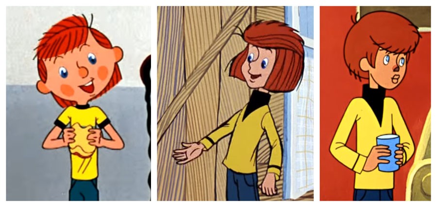 Кадры из мультфильмов "Трое из Простоквашино", "Каникулы в Простоквашино", "Зима в Простоквашино"