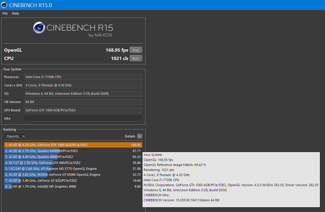 Maxon Cinebench R15 на моей в 4 раза более дешевой видеокарте показывает в 2,5 раза более высокий fps: