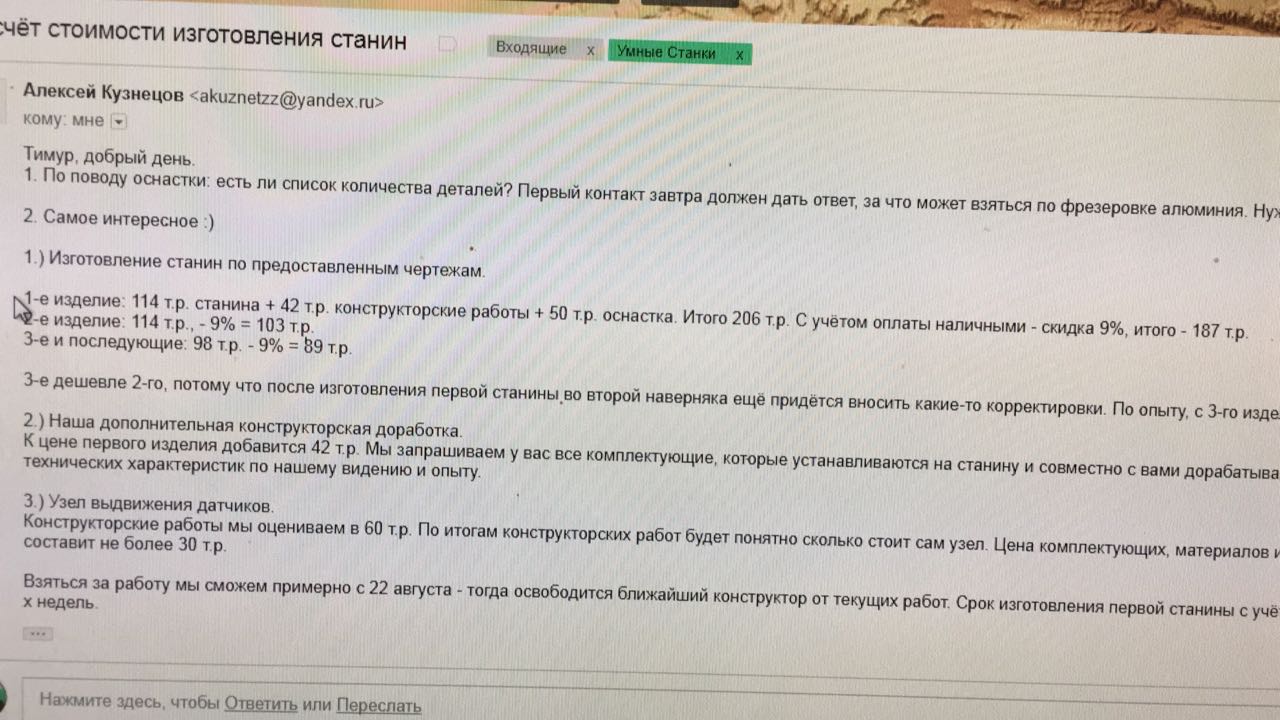 2 ляма за станок на шаговиках, с оцинкованным крепежом из китайского говнолина и самой дешманской проводкой из строймага. О беспощадный Рашен бузинесс! Какие отборные его представители работают в "Не особо умных сьтанках"...