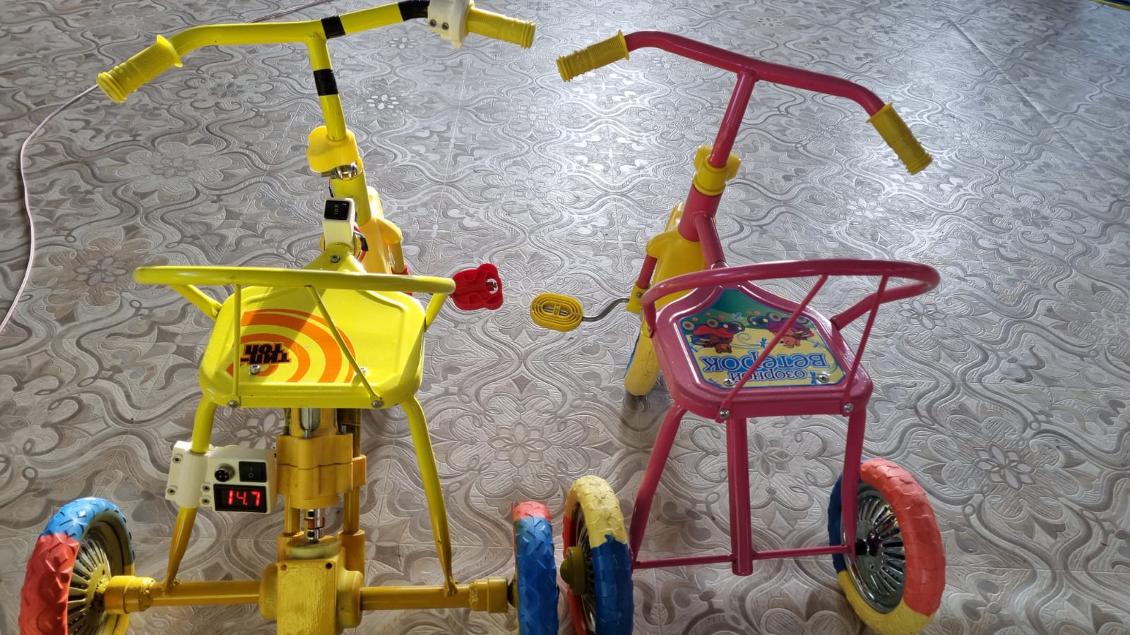 Сейчас супруга сделает пару фото моей поделки. Приделал пару месяцев назад ребенку на ДР 2 годика моторчик к велику, но на печатном редукторе с псевдодифференциалом и с аккумом. Пока боится садится, но очень любопытствует :)
