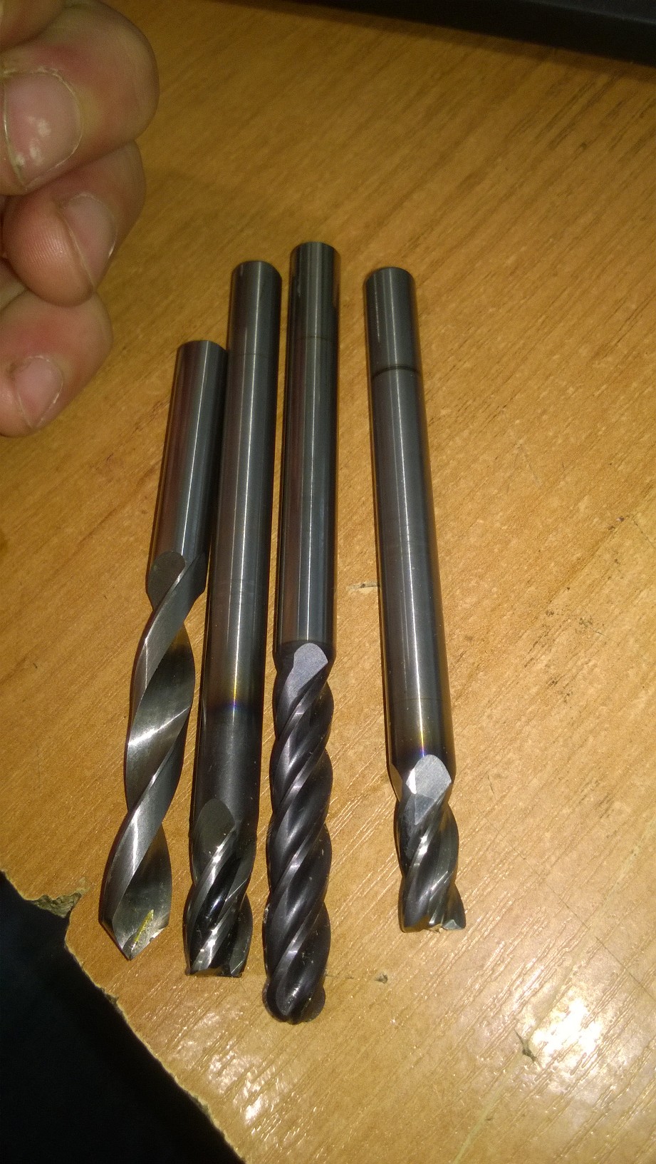 Как ни странно, фактически пацанский подгон фрез - 3 шт Ф8 (сфера 100 мм), 2 концевых с радиусной кромкой (100 и 90 мм) все новое. Сверло ТС Ф8 - переточенное.