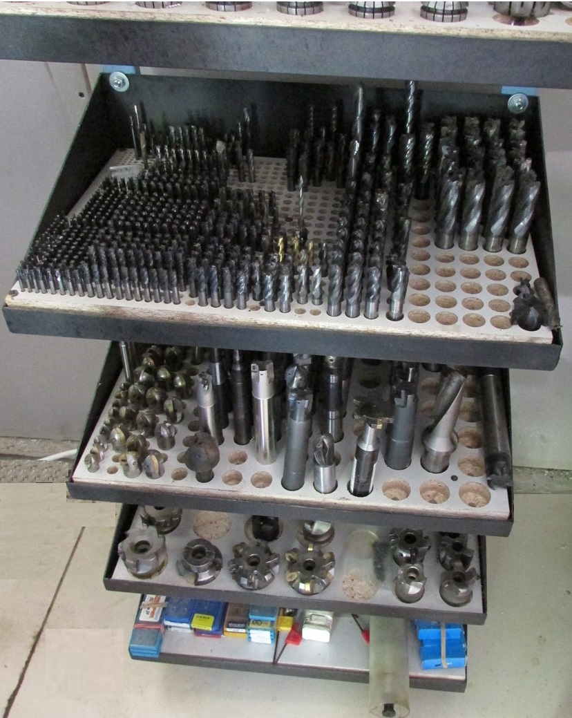 Новый инструмент хранится в коробочках, юзаный так чтоб было визуально видно что есть. Так удобней выбирать.