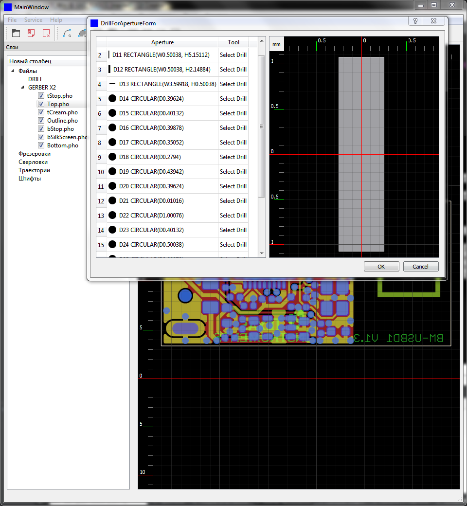 Решил сверлится или фрезероваться по апертурам без *.drl файла.