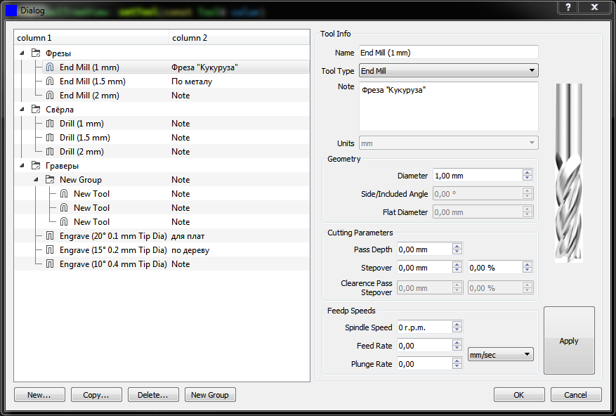"вдруг у кого то сотни позиций" Написал я это, для того что у меня для одной и той же фрезы разные режимы для разных материалов, и при больших перерывах в работе я их забывал, терял. Теперь всё в одном месте.