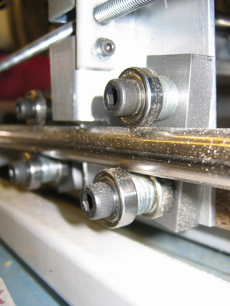 Точность и возможности такой рельсы очень сильно зависит от выбора материала рельсы. Если брать промышленно изготовленные рельсы, то можно добиться неплохого результата. При использовании металлопроката, в особенности из чермета можно тоже добиться неплохих результатов, особенно, если их обработать на шлифовальном станке. Использование алюминиевого профиля спорно: многие утверждают, что на профиле будут достаточно скоро прокатываться дорожки, но я слышал несколько людей, которые используют такие направляющие для фрезеровки дерева, и говорят, что никаких дорожек не появляется и люфтов тоже нет. Кроме того обычно каретка содержит механизмы компенсации люфта. При этом преимуществом алюминиевого профиля является его относительная ровность по сравнению с черным металлопрокатом.
