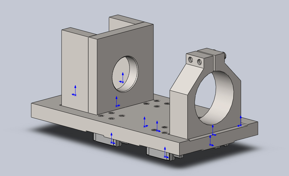 Они изначально в "проекте" были. Но потом убрал - шпиндель же тоже часть конструкции, тоже на жесткость влияет. Основание - плита стальная 30мм. СТакан шпинделя 132мм в диаметре с толщиной стенки больше 10мм, связывает верхний и нижний хомуты. Честно сказать не знаю, что там и куда прогнется. Пока не изучил в Solid-е как жесткость конструкции проверить. В дальнейшем, по необходимости, ребра можно будет добавить, для этого верхний и нижний хомуты сделаны одной ширины, к ним легко можно доделать ребра.ukr-sasha писал(а):Ильдар. Недоработанная конструкция: нужны боковые ребра жесткости.