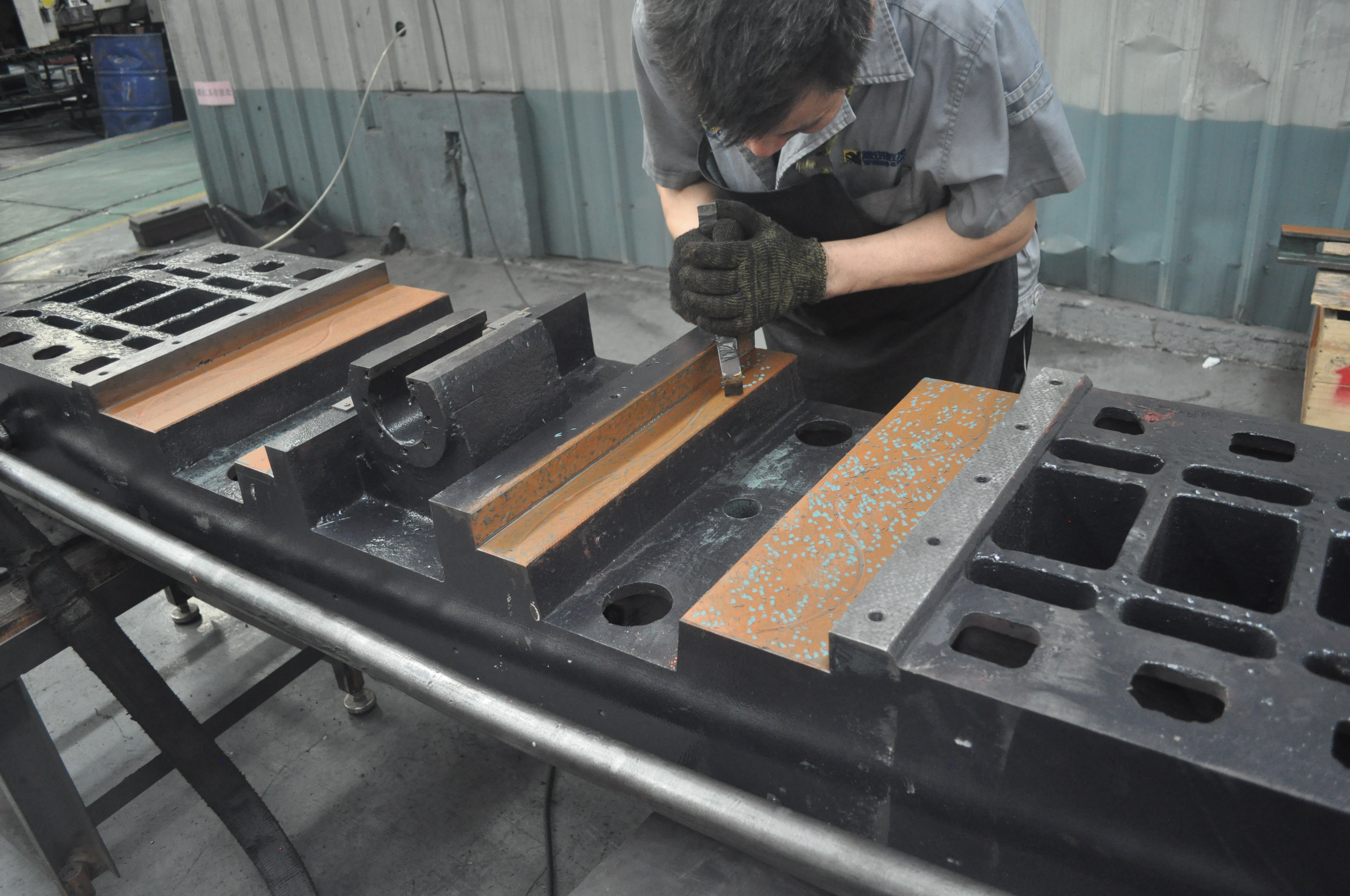 Те станины на фото, которые без прорезей, это станины гильотин.