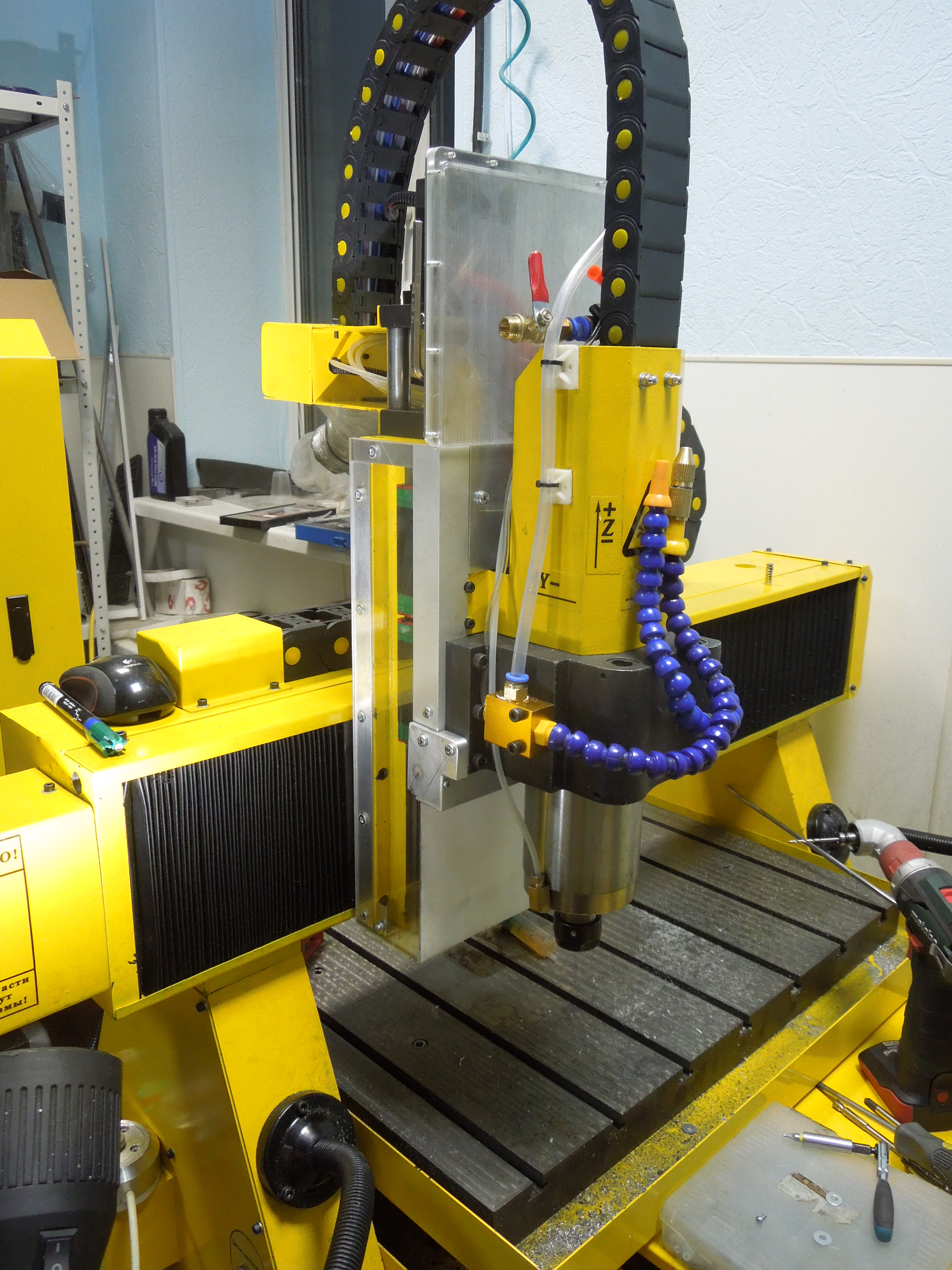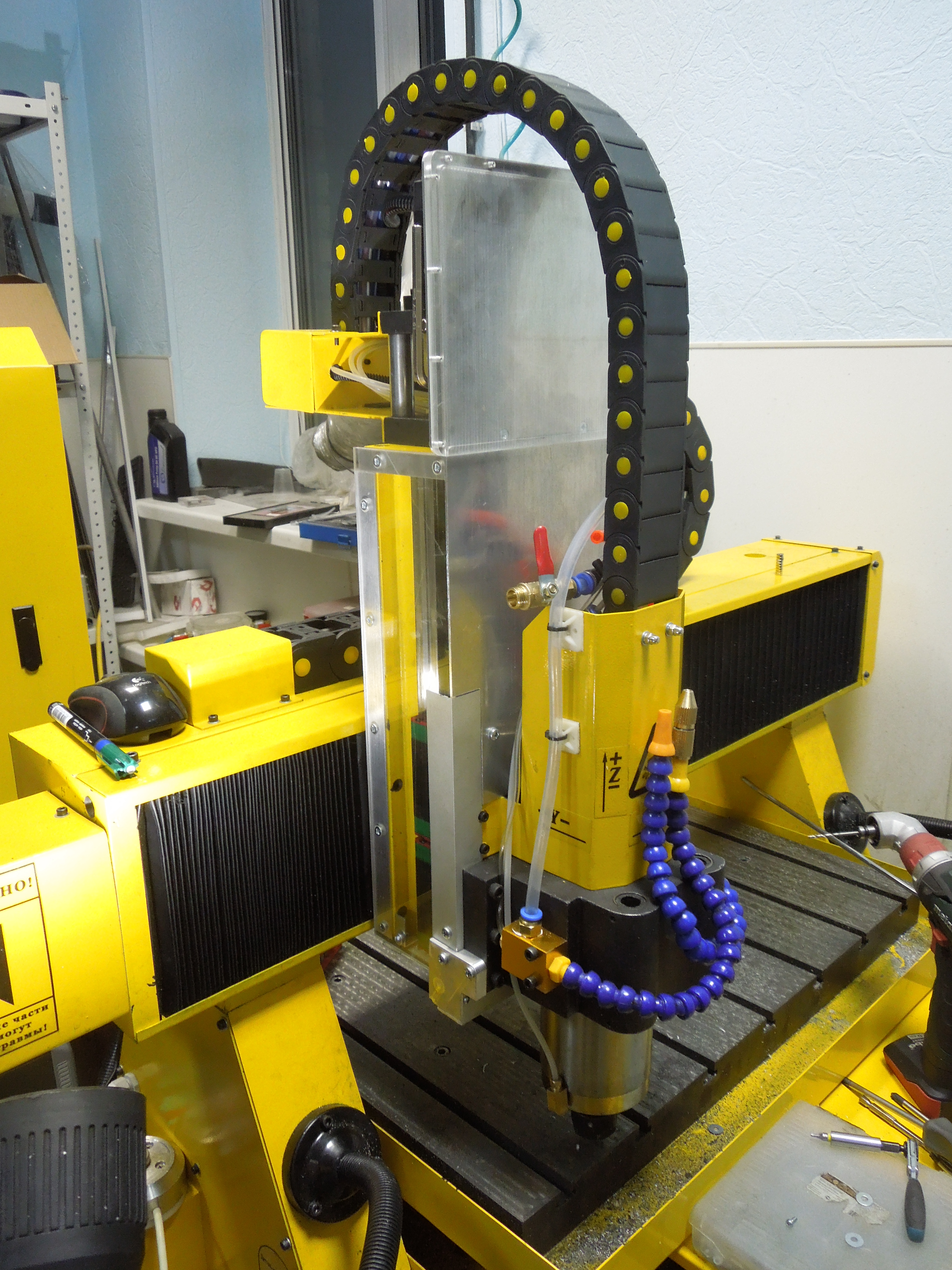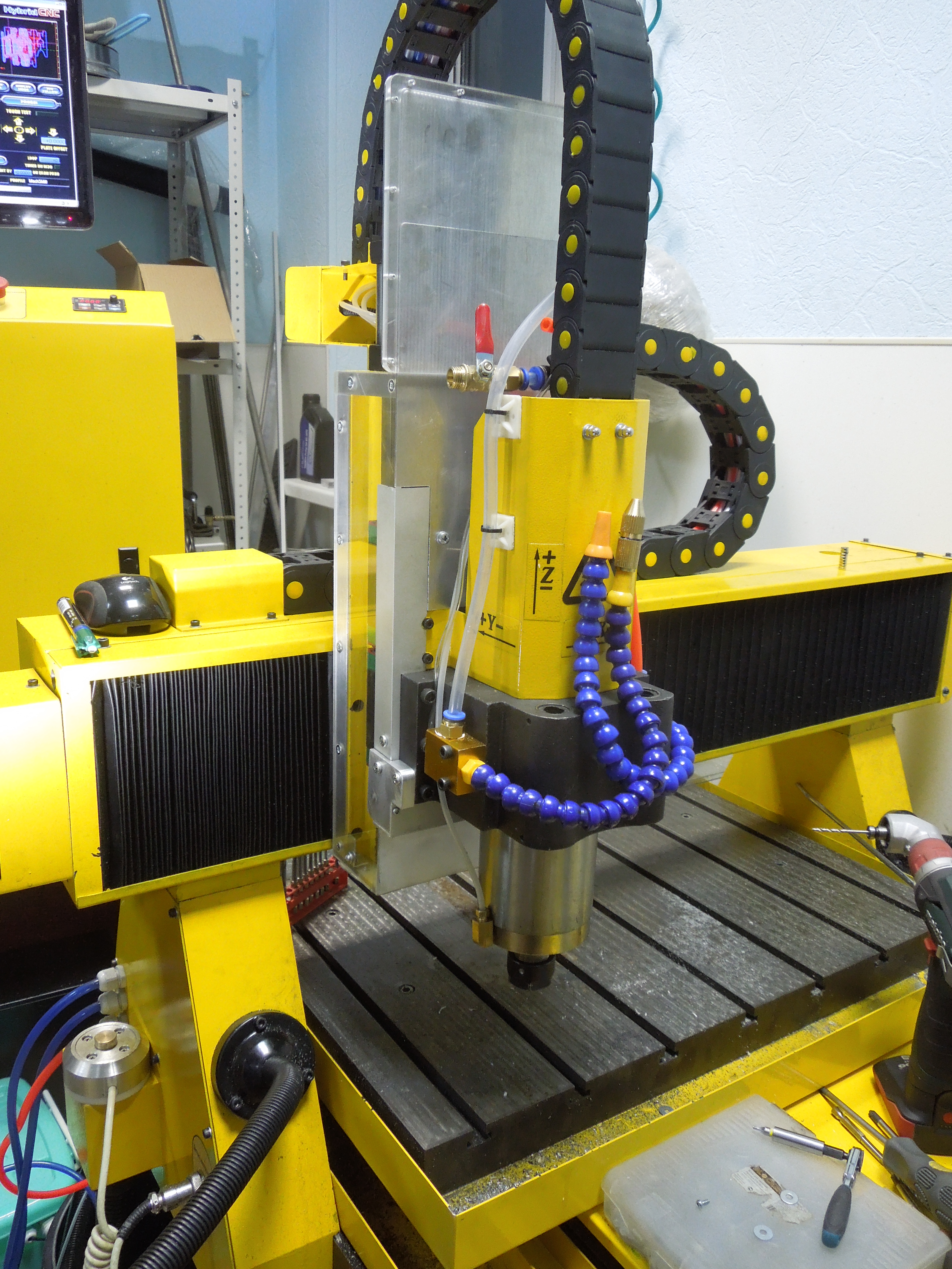 Решил сразу немного пропатчить его, а конкретно - поставить защиту(от опилок) на Z и возможно на Y, т.к. в 70% случаев обрабатываем металл(алюмишка, мягкая сталь), также бывает дерево(которое на ура забирает всю смазку), также иногда по пластику вместо СОЖа(туманом) использую мыло или вообще фери - которые тоже влёт смывают всю смазку с рельс. Вообщем без защиты угрохаем его очень и очень быстро. До этого был китайский роутер 6040, кстати его скорее всего будем продавать.