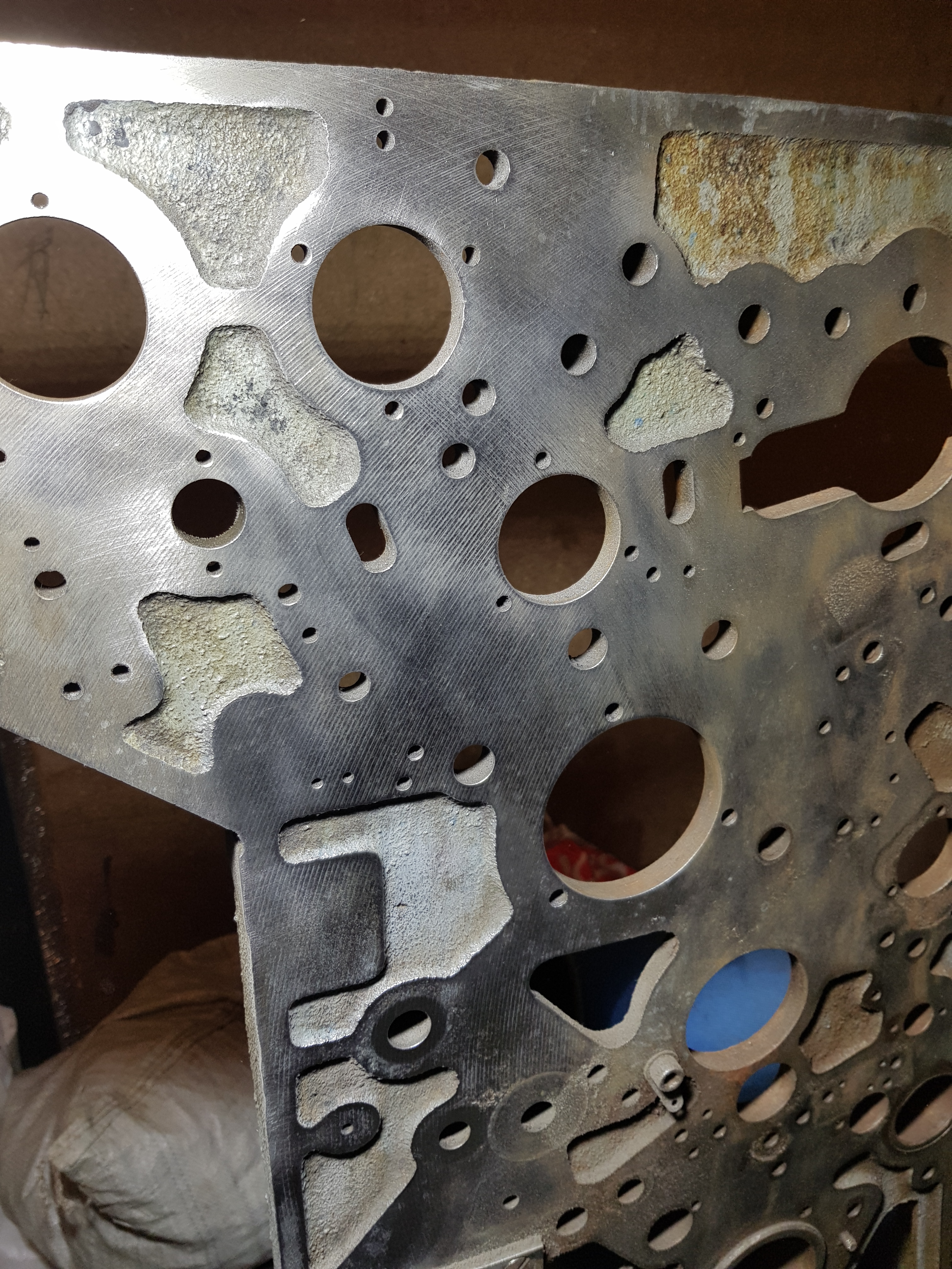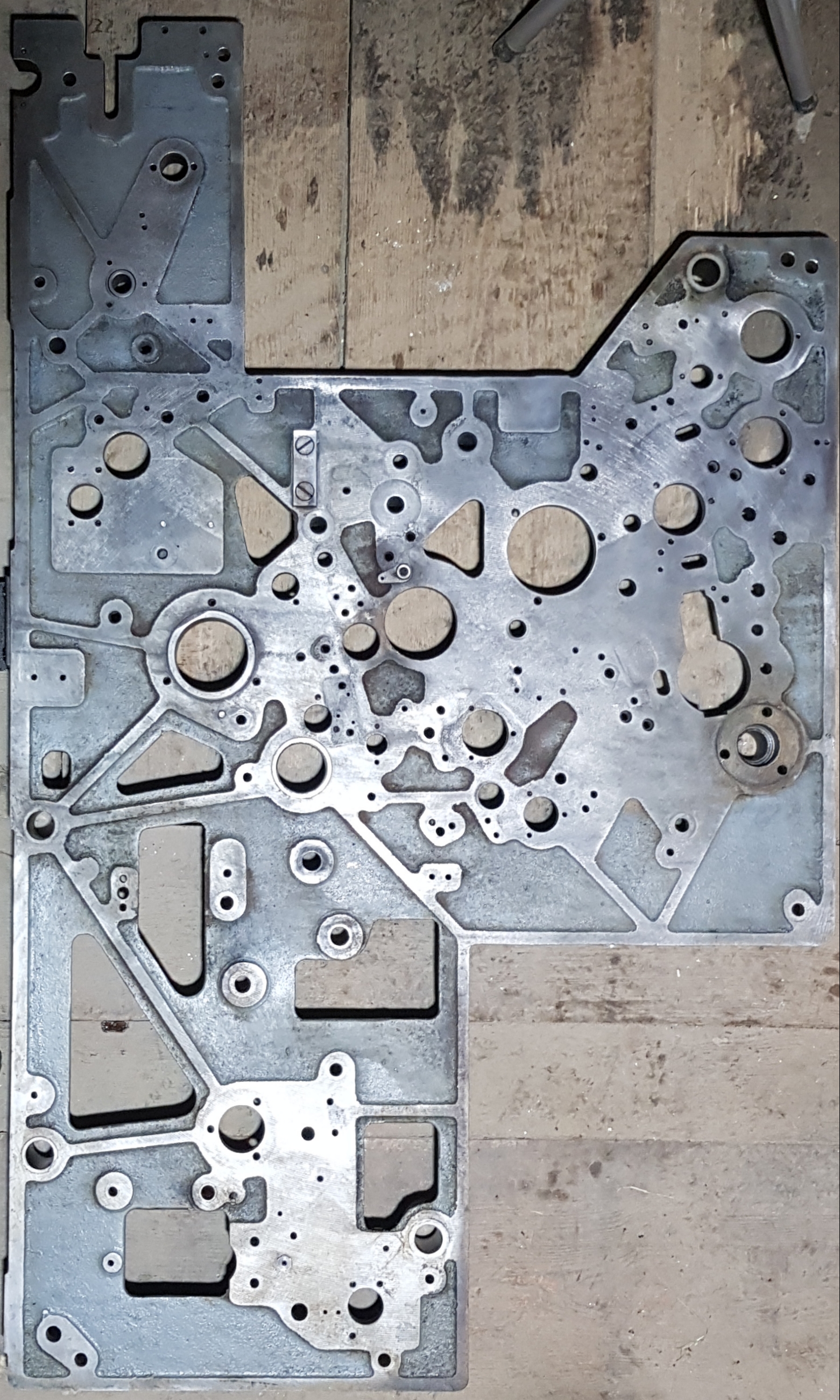 Именно из-за этого в конструкции останется 4 штанги диаметром 30мм которые обеспечивают все вышеперечисленное и размер между стенками 690мм. На сегодняшний день отчистил чугунятину от грязи, это была всего лишь типографская краска. Общий план. Кстати не знаю в каких местах и направлениях кому то не хватает толщины а в тех местах где я буду производить крепления основных частей в достаточном количестве имеются ребра жесткости. Все детали пронумерованы, что говорит об индивидуальной подгонке деталей по отношению друг к другу. мое общее мнение про поверхность боковин как "прожженного" инструментальщика, ответ на "фрезерованное не значит ровное", пылили летучкой диаметром либо 500 либо 600мм. Меня такая поверхность вполне устраивает. Обязательно все будет измерятся на параллельность и перпендикулярность, когда все будет собираться, инструмент и стойка индикаторная присутствует