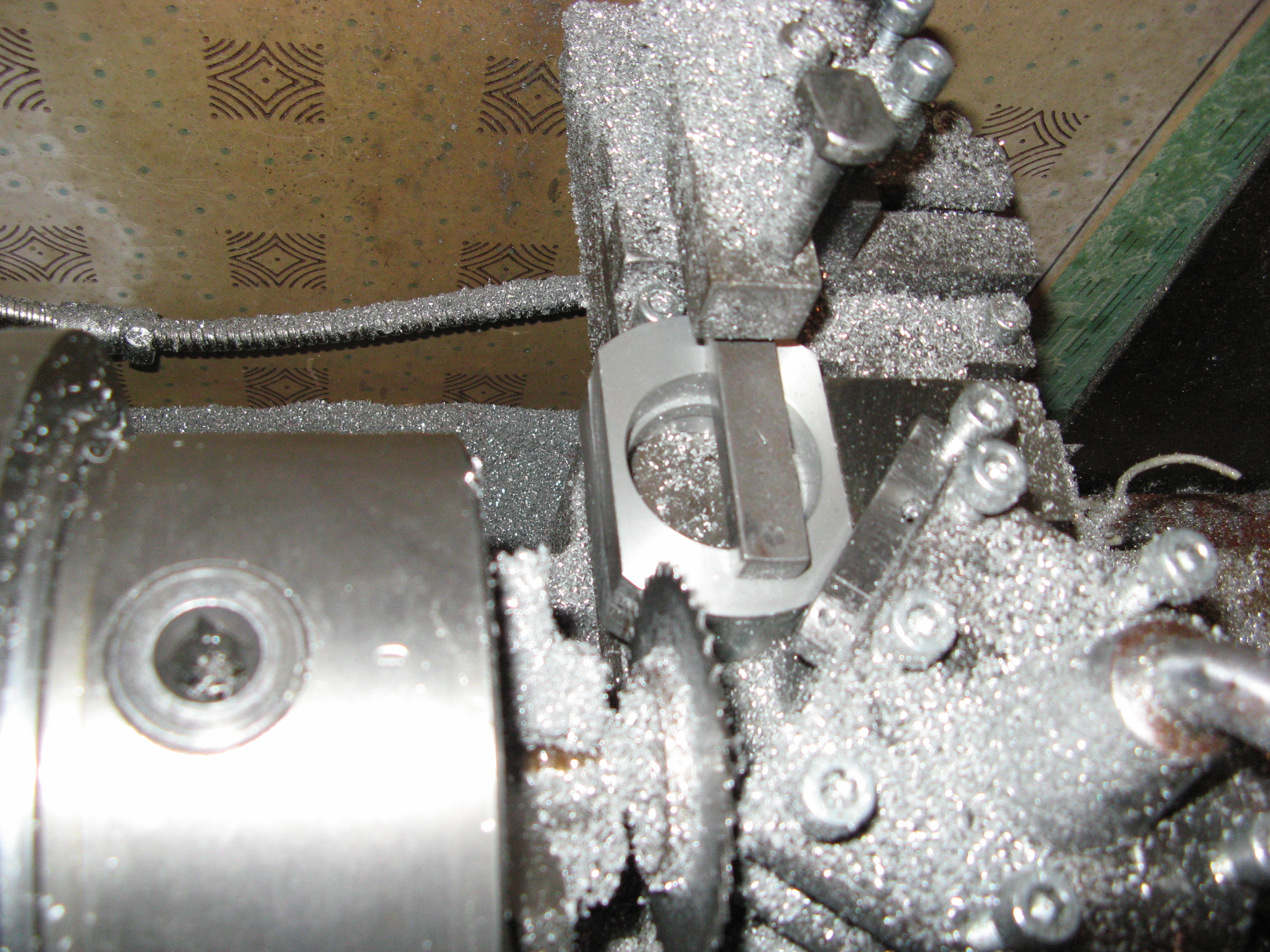 теперь про одну из самых интересных деталей - бронзовую гайку. для начала видио работы солдатика - заднего резцедержателя. сильно облегчает жизнь в плане точности получаемых деталей. в данном случае точилась заготовка для гайки и отрезалась резцом, расположенным в солдатике.