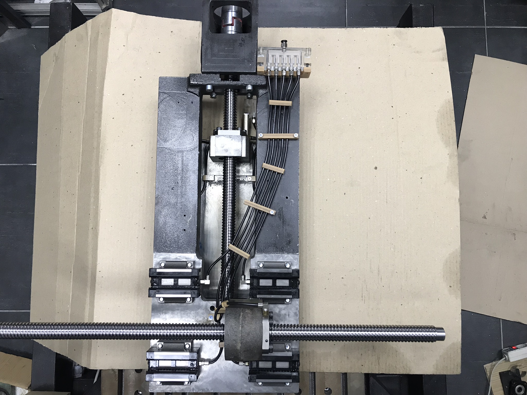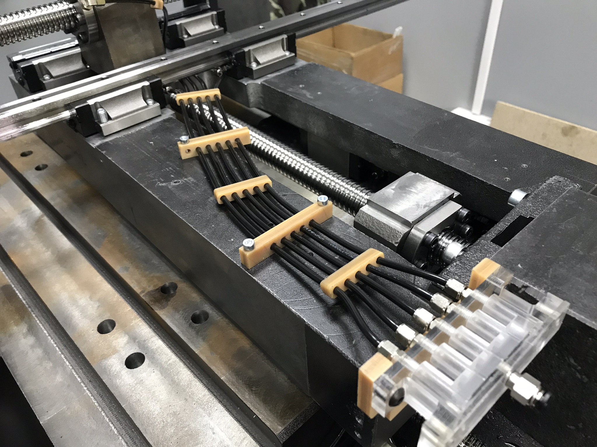 - резьбы на пневматических фитингах не хватало для вкручивания в корпус каретки, пошли в шод стойки для печатных плат с резьбой М5: - испытание каретки на самотек, остановился на порции 2мл: -дальше фрезеруем корпус: - и собираем, решил крышку на клей потом посадить, вдруг придется подавать смазку принудительно, пусть будет герметично уже сейчас: - сегодня испытания проходили на оси Х , этап сборки: - и сами испытания , было два этапа, после полного опустошения, а это примерно 30мин. , было повторно залито масло. Трубка к швп самая короткая, в нее убежало раньше всех, но как видно на фото всем досталось поровну: Масло использую специальное "АГРИНОЛ МАСЛО ДЛЯ НАПРАВЛЯЮЩИХ СКОЛЬЖЕНИЯ ИНСП-110 (ISO VG 220)".