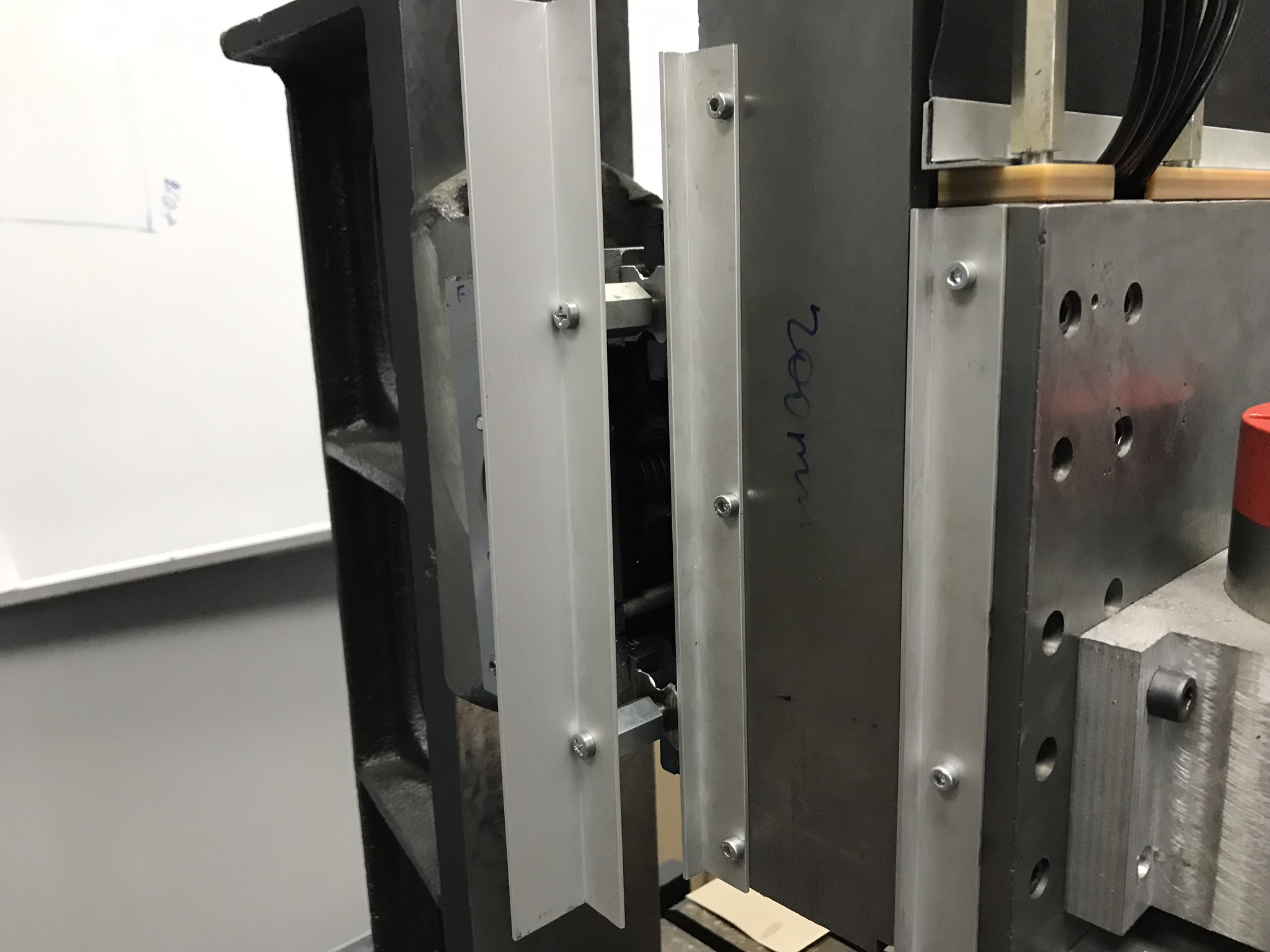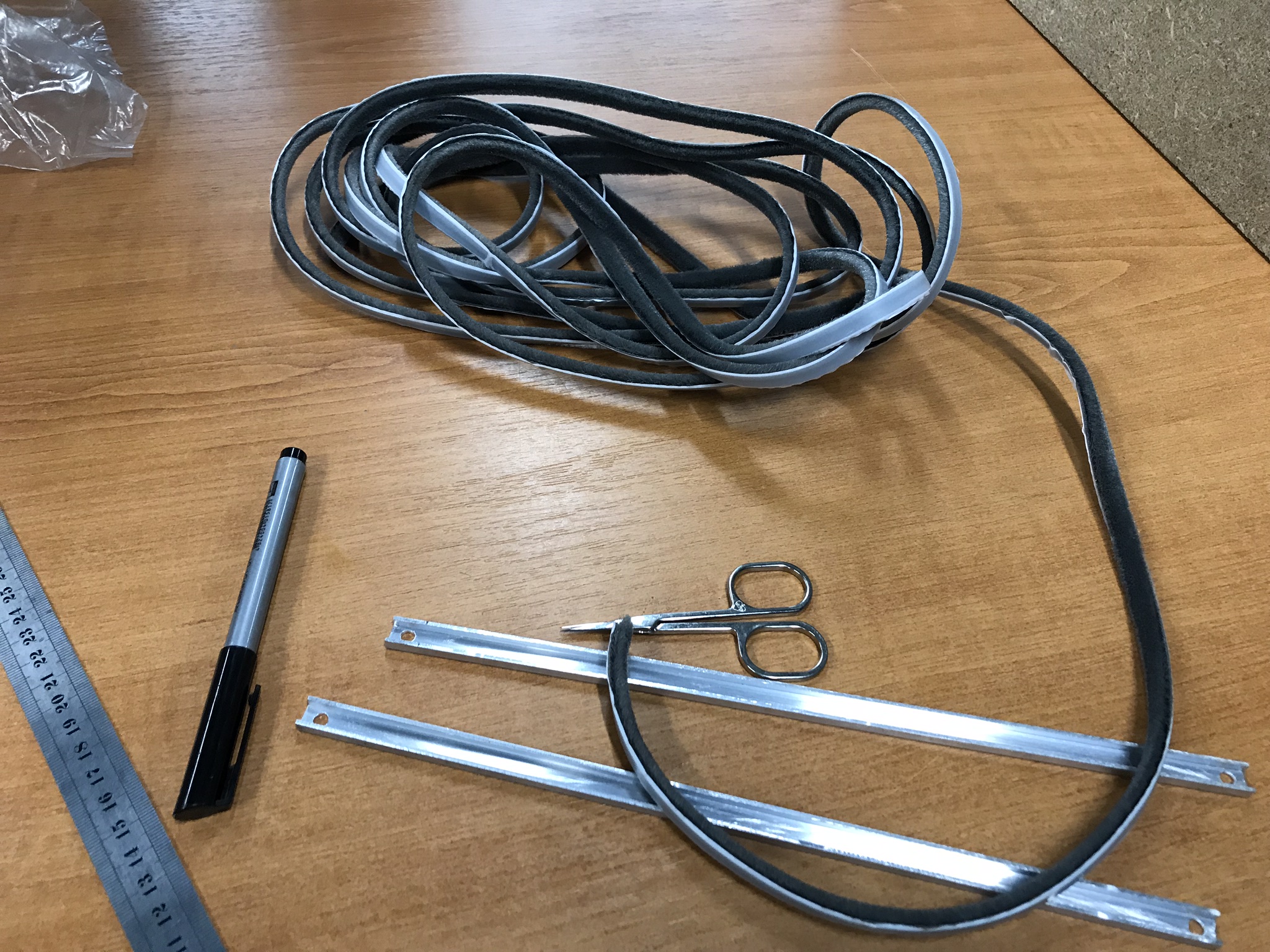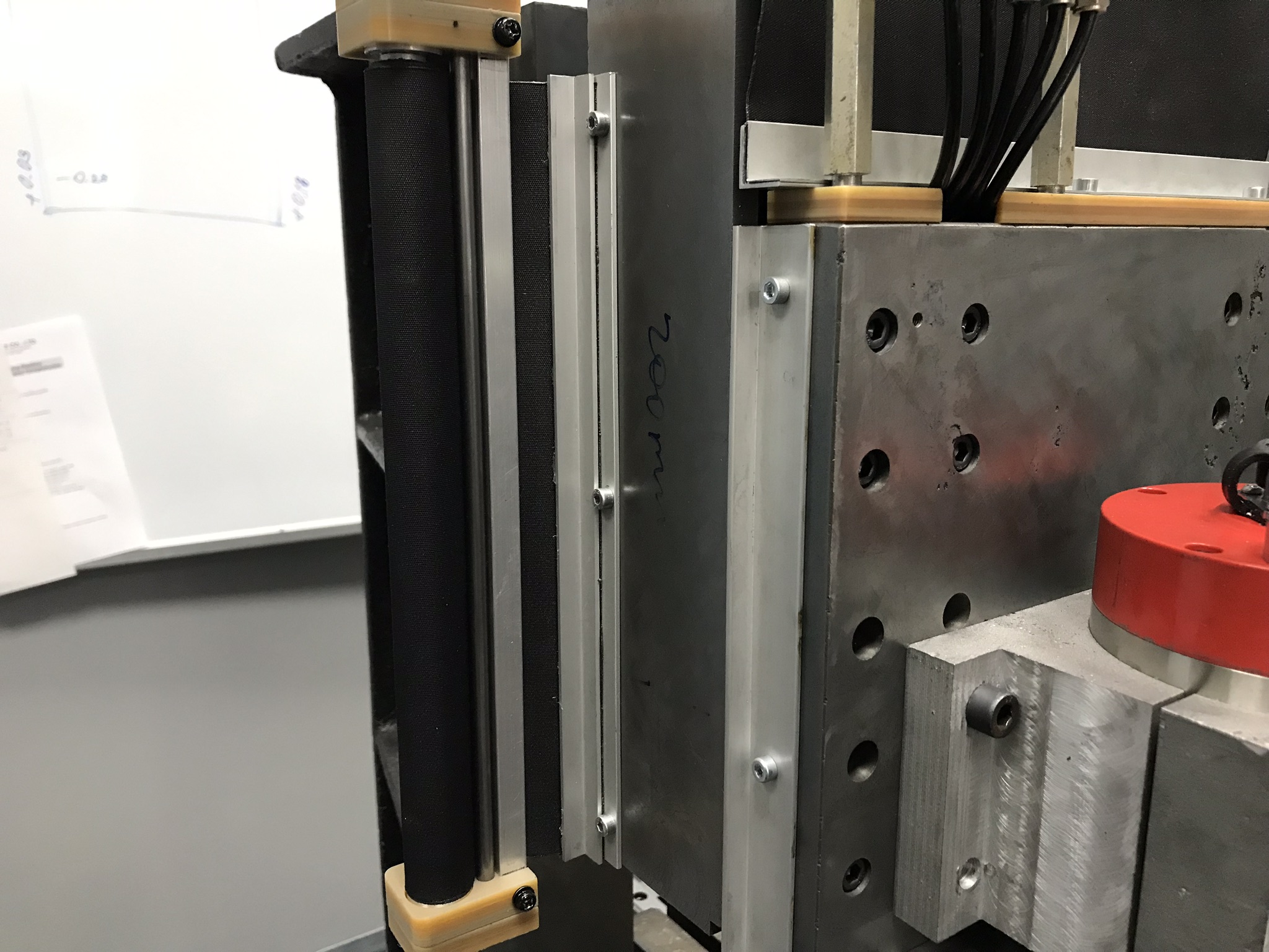 для логического завершения добавлю немного фото установки защиты на ось Z. Из важного - второй прутик создает преднатяг шторки при сборке, можно выкрутится и поставить взведя пружину по месту. У меня изначально планировалась смена направления разворачивания шторки, прутик там был просто необходим а здесь просто пригодился. Ткань между уголками держится на клею, не думаю что вырвет, можно было бы завернуть под обе стенки, но посчитал лишним. По оси Y будет примерно также, крепление чуть развернуть придется, но принцип оставлю тот же.