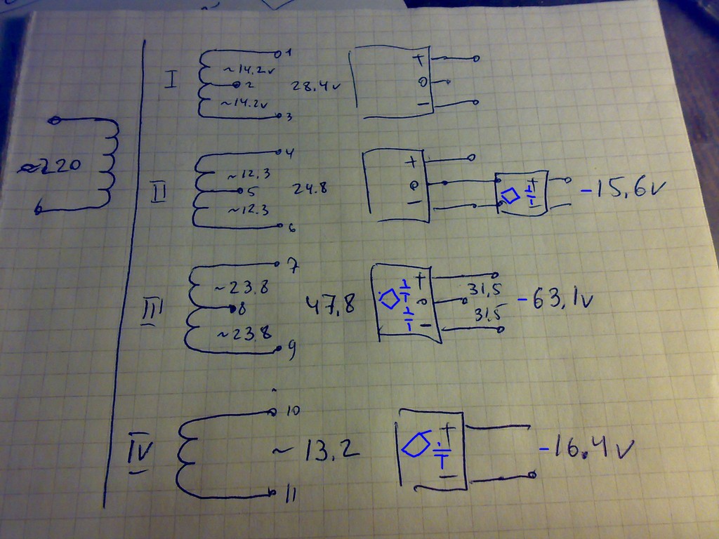 2 лишнии вобще убрал. останется на трансе всего одна вторичная обмотка.