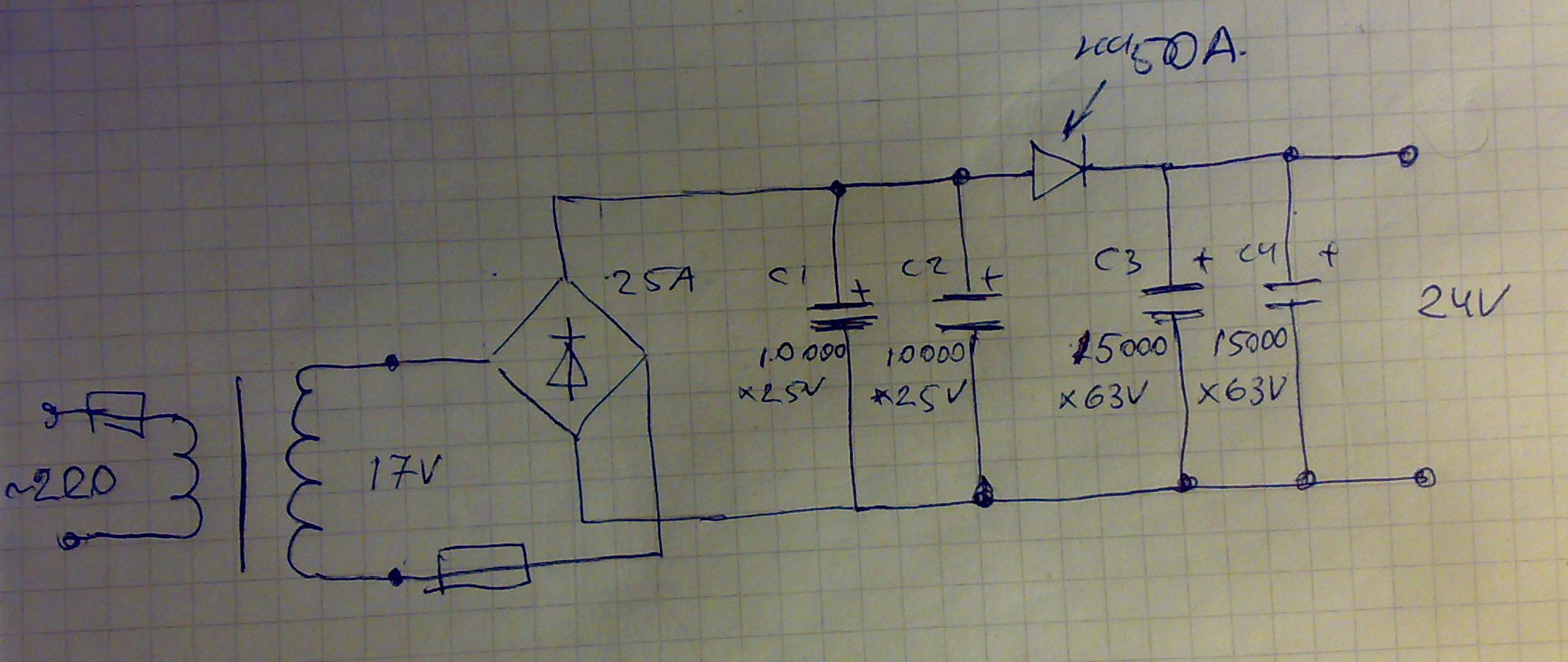 Схема простого БП на 24 В 3-5А 400-500Вт для CNC