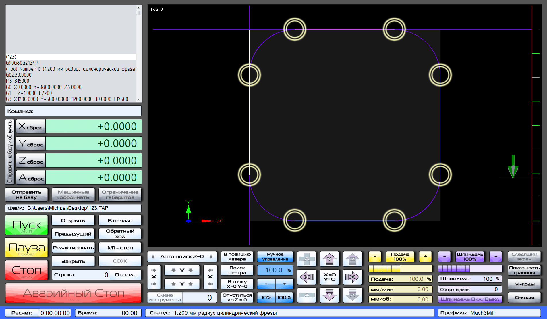 В отличии от Mach3 программа с легкостью отображает на экране траектории любой сложности и при этом не тормозит и не требует ничего сверхъестественного от компьютерного железа.
