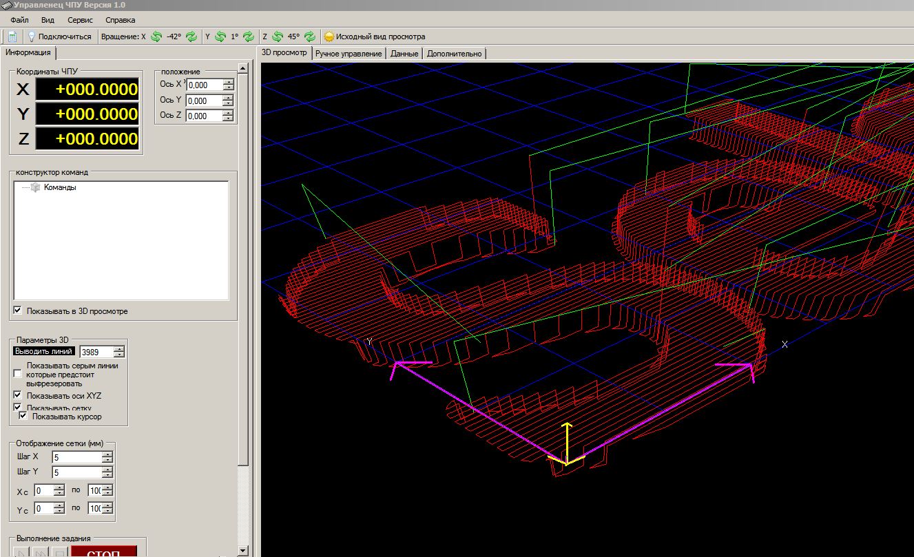 Для более удобной работы я делаю удобную оболочку, альфа версия уже выглядит так: Можно загружать G-код который не имеет окружностей, и получается так: Но в процессе моих задач часто нужно бывает выполнить простые операции, и для того что-бы не ваять G-код в сторонней программе, делаю простой конструктор, с различными примитивами, пока правда всего 2 Третий и четвертый пункт на будущее, но для 4-го пункта уже проверял использование переходника http://tixer.ru/catalog/modules/interfa ... e_ft232rl/ с Андроид планшетом имеющий USB вход, посредством терминальной программки можно рулить уже сейчас.