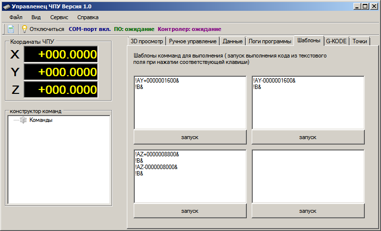 А выполнять произвольные команды можно легко, вот тут: Только код у меня немного отличается от G-кода, т.к. все указывается в импульсах, что-бы избавиться от плавающей точки в вычислениях, хотя позже переделаю.