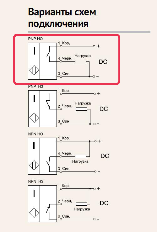 Это сам датчик из статьи: Это как его подключить: Как я понял NPN это когда сигнал (нагрузка по схеме она же диод на примере в статье) на коричневом и черном проводе а PNP когда сигнал на синем и черном. Я заблуждаюсь?