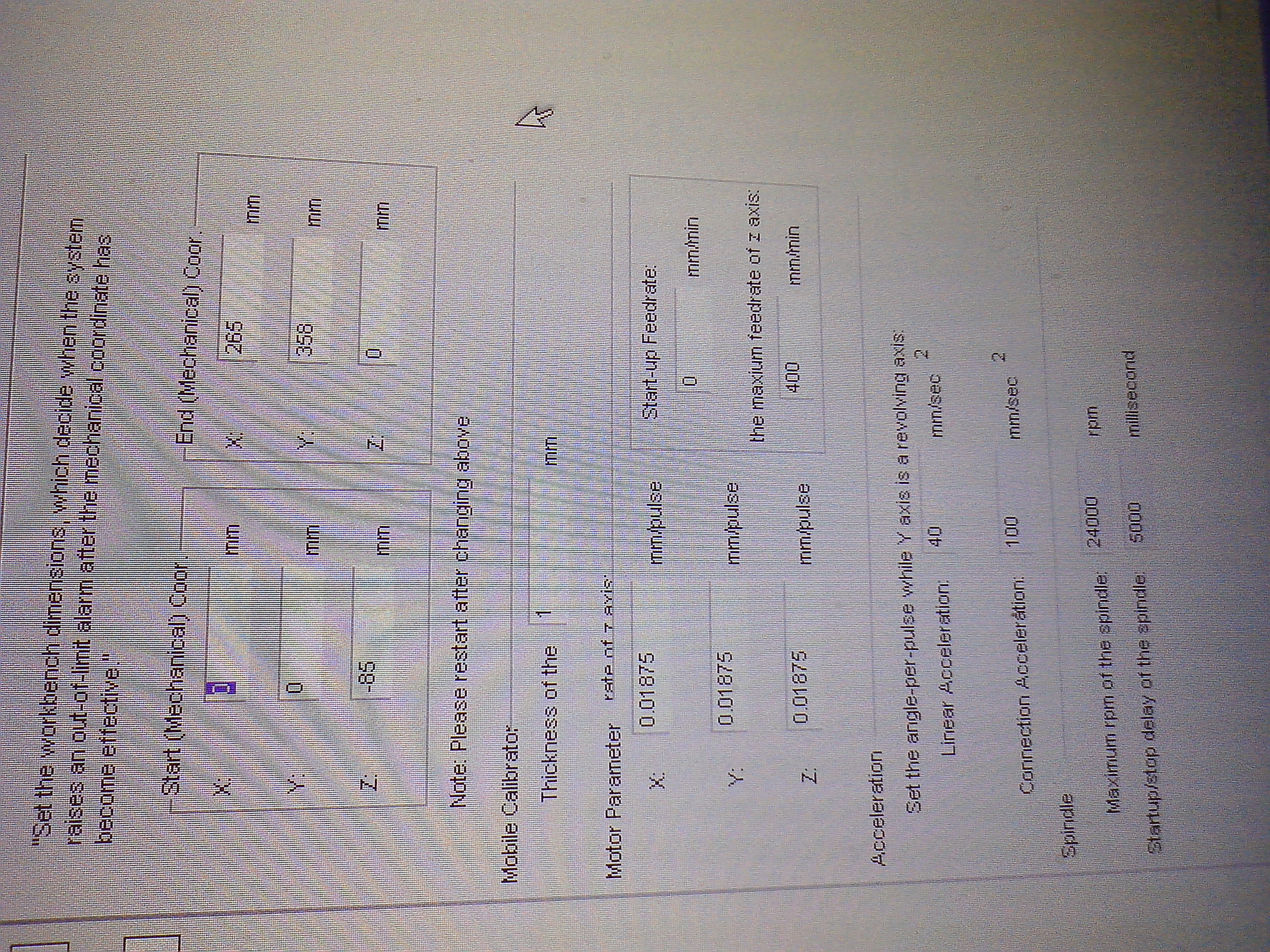 Давай с самого начала - просто обычный шаговый мотор на 200 шагов, напрямую без всяких ременных редукторов вращает винт ШВП с шагом 5 мм, на драйвере установлен режим полного шага, и при этом станок нормально работает при задании коэффициента 0,01875?atom12 писал(а):шаг 5! вручную проворачиваю один оборот на 5 мм портал проезжает))sertix писал(а):Ходовой винт у тебя наверное с шагом 3мм, а не 5мм?