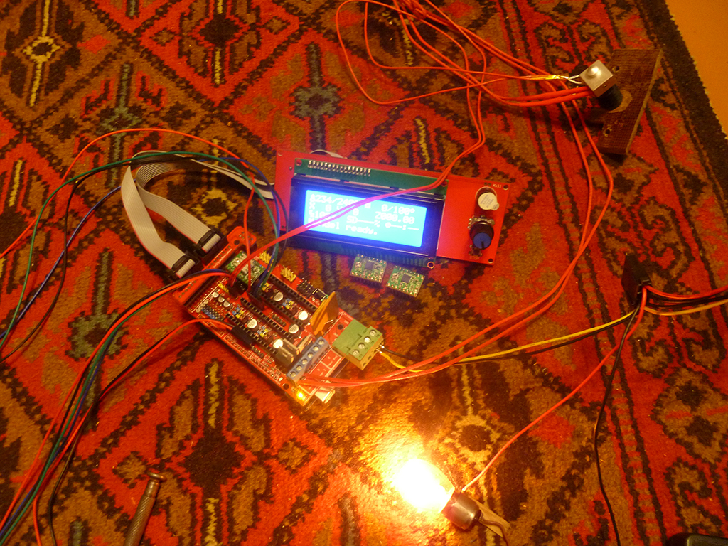 ФУ)) ну вроде заработало)) Экструдер греет) Действительно надо было нагрузить 5 вольтовый вывод) Теперь движки осталось проверить)) вот как проходил тест)