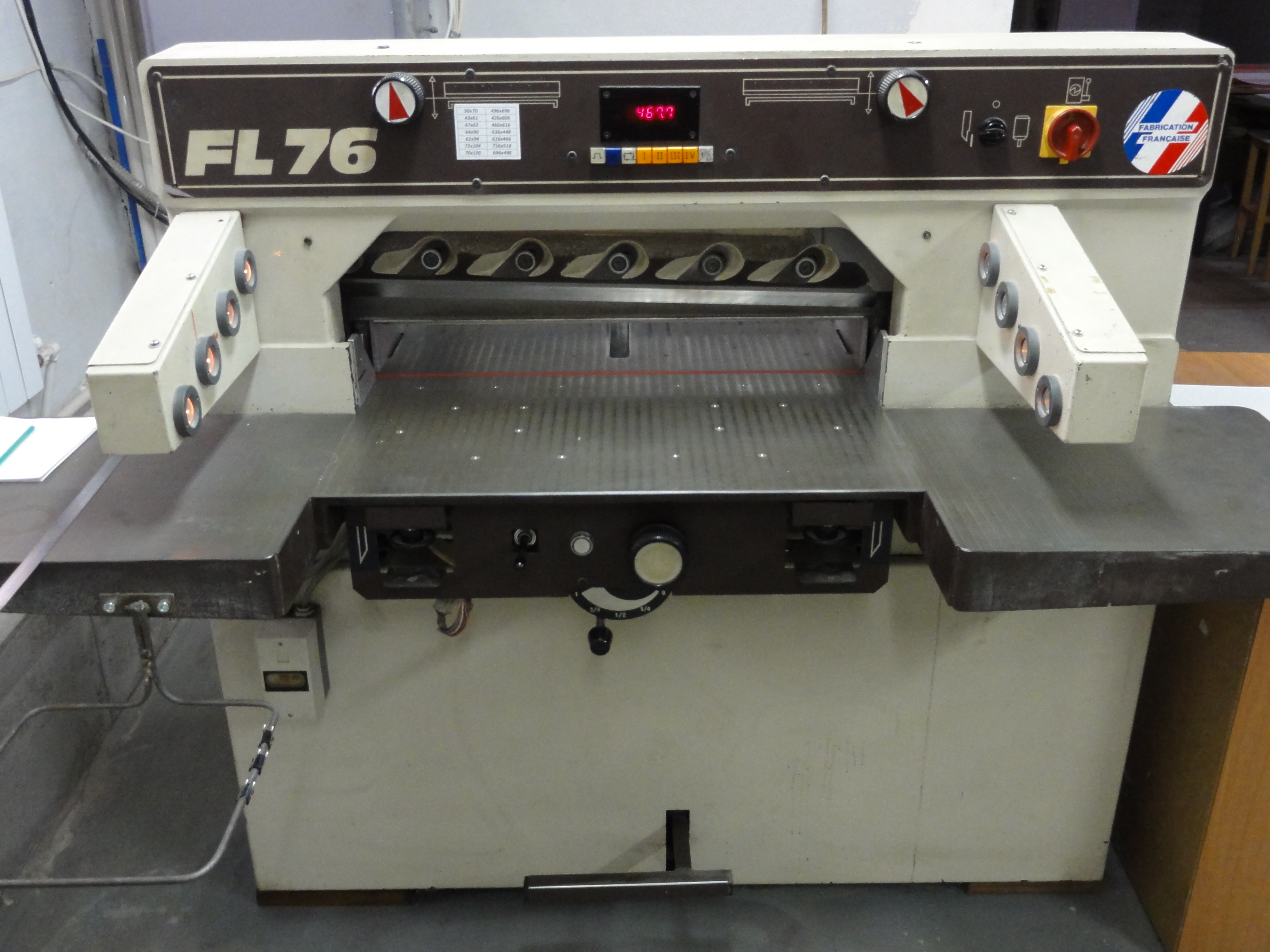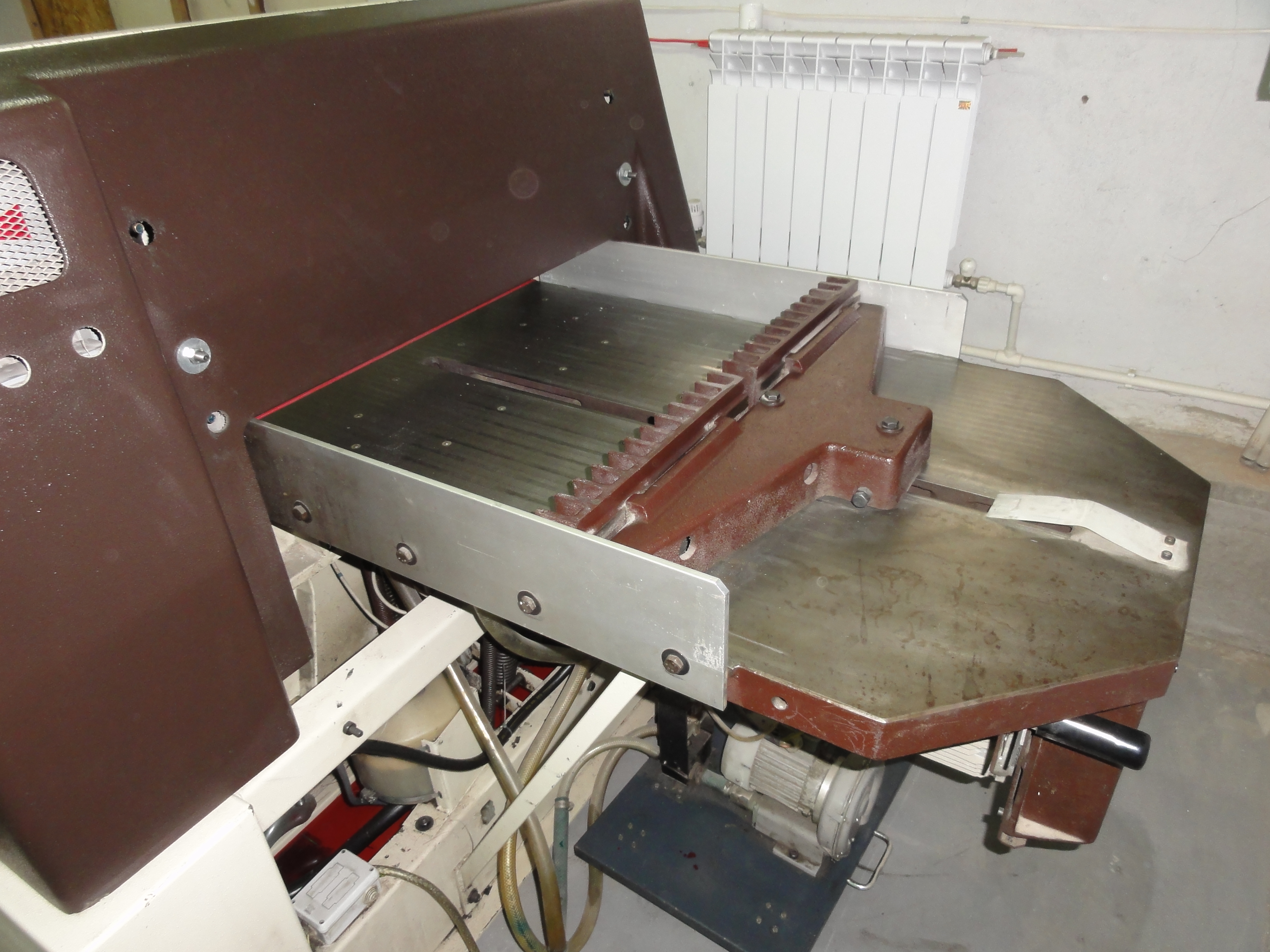 задали размеры с панельки, нажали кнопку, станок сам покрошил бумагу, проверяя точность своей остановки, вернул упор в исходное положение и ожидает бумагу.