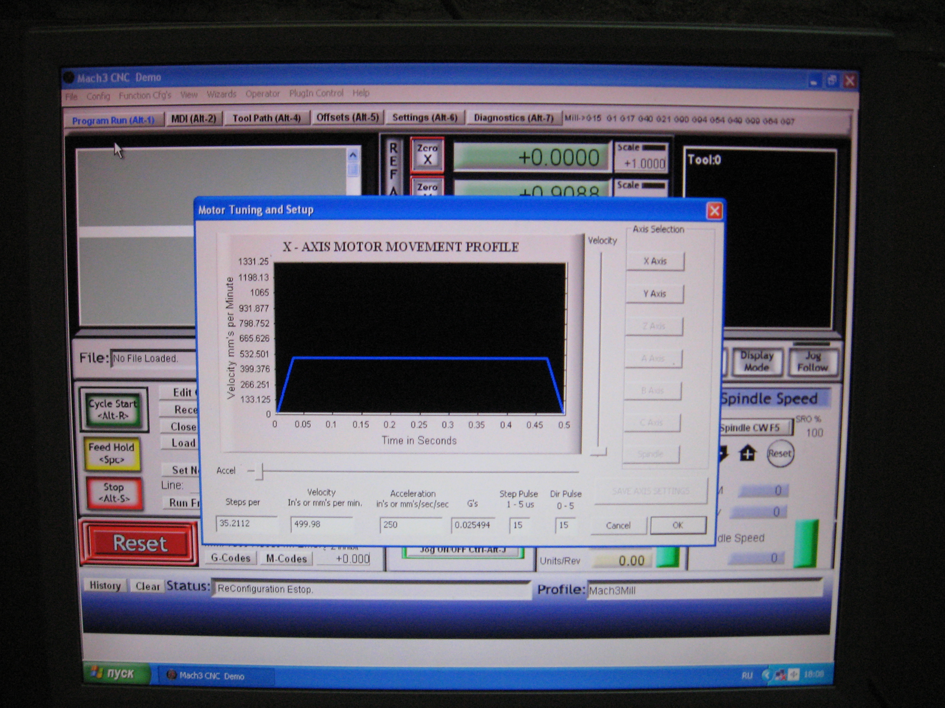 Преогромнейшее спасибо. Заработало. Действительно ускорение. Думаю было настолько настолько маленьким, что станок продолжал замедлятся уже после стопа. Вообщем откалибровал. Вот фотки нашего станочка, ну и если можно еще пару вопросов: