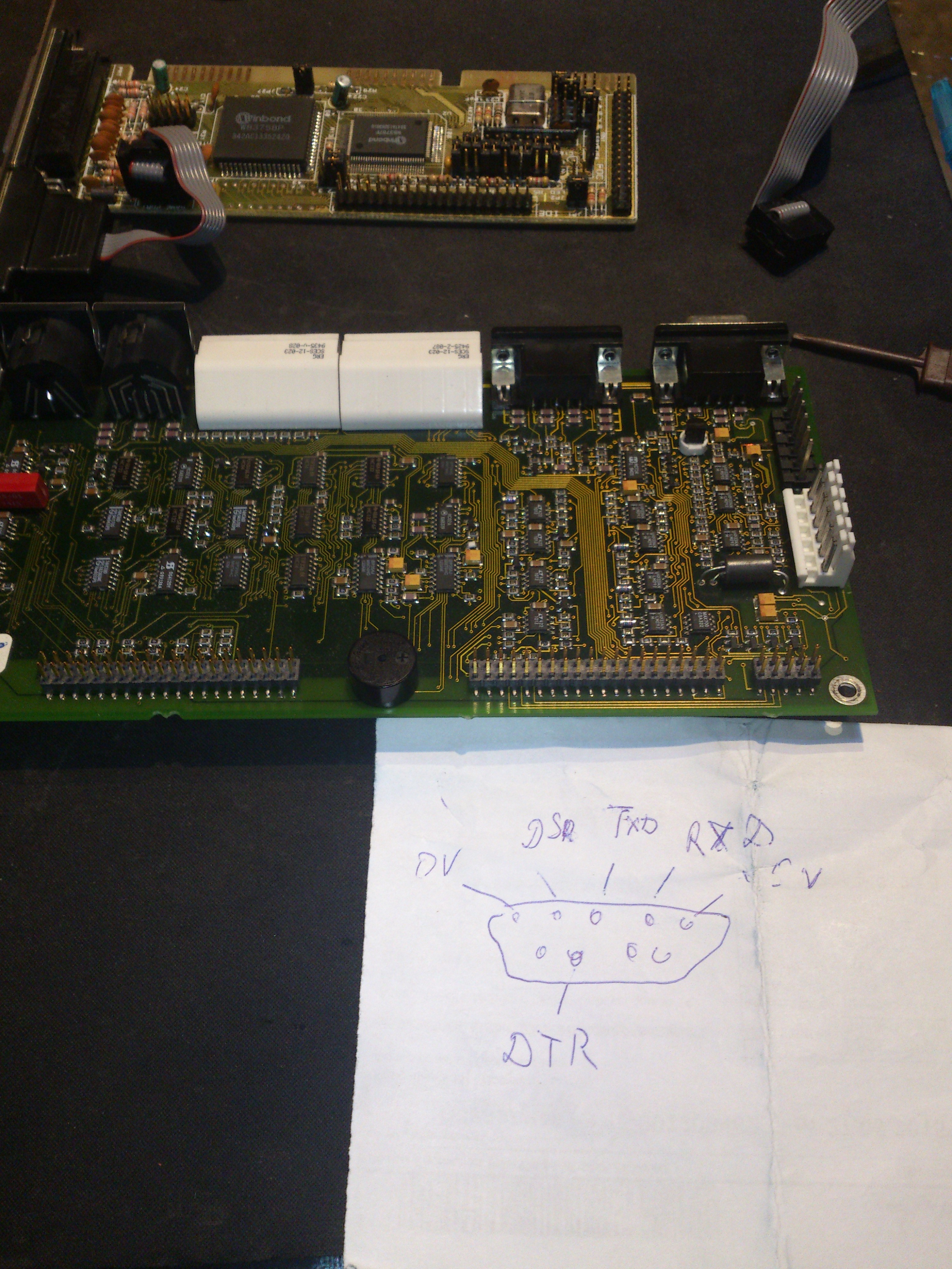 Далее надо узнать распиновку ответного порта под пульт на контроллере. Снимаем плату интерфейсов Renishaw и плату Winbond с Com-портами. Разбираем контроллер.