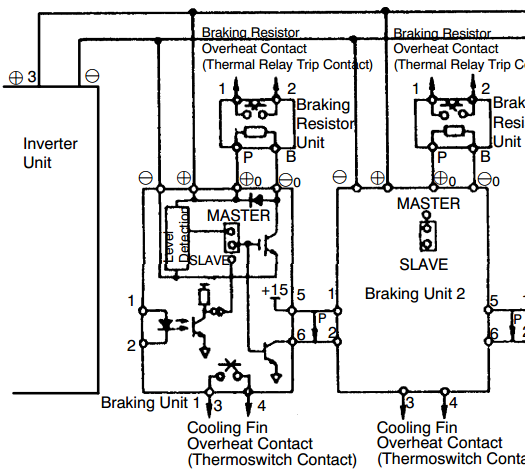 Нашёл всё таки у себя функциональную схему тормозного модуля в инструкции от производителя.