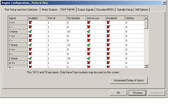 ПО идее выходы P12, P13, P15 и GND (который рядом с этими выходами) то, что нам требуется. На них и вешаем датчики. Или все же GND надо брать с другого контакта (Например PC GND, снизу третий справа ), ибо при таком подключении на датчики мач3 не реагирует.