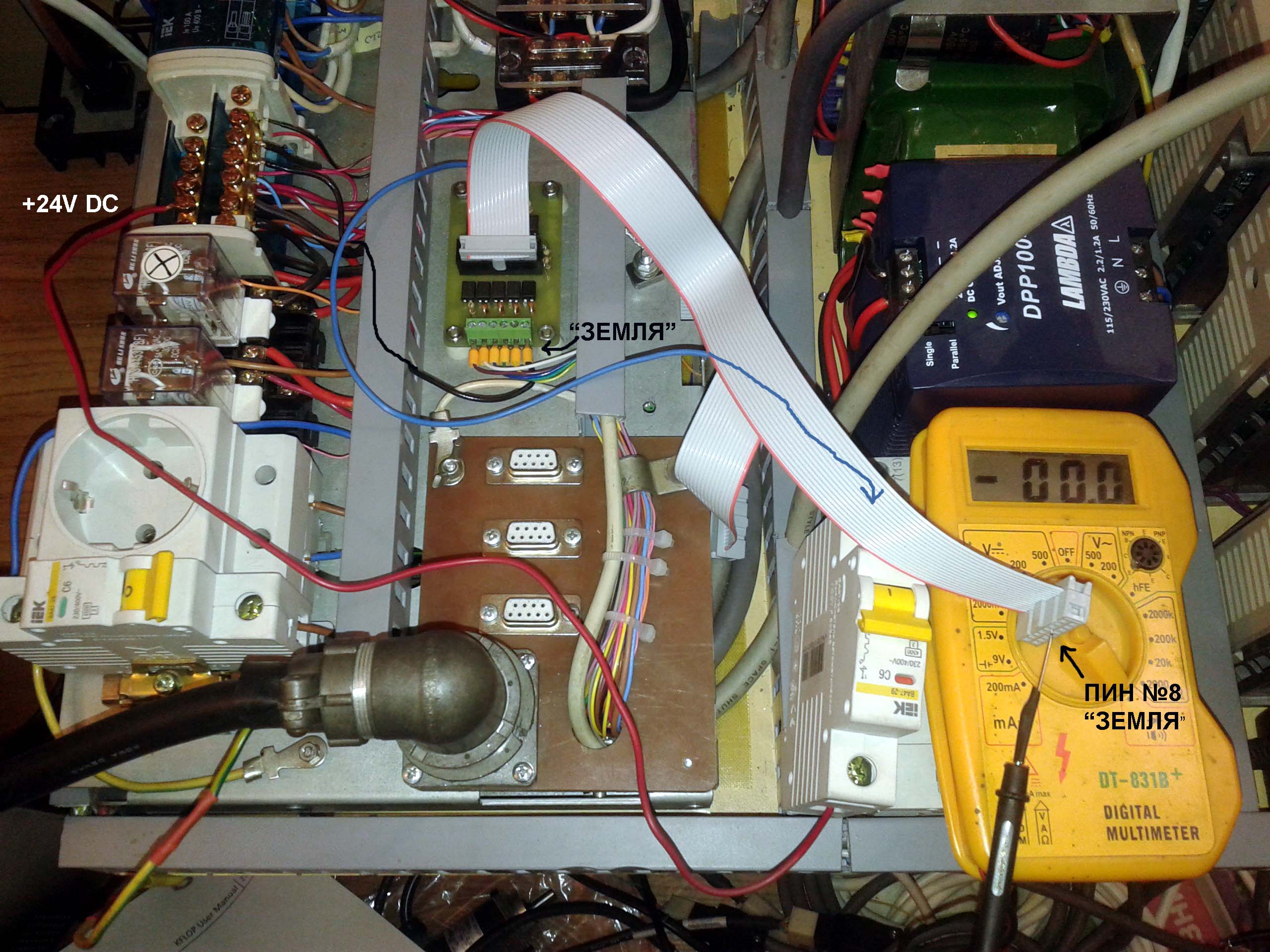 На фото все отметил. Вывел с блока питания на 24В красный провод (+24) и черный - землю. Замля подсоединяется к плате в соответствующий пин. +24В заводится через автомат в плату в один из каналов.
