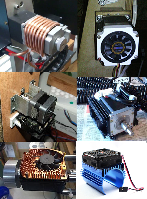 охлаждать можно, но нужно понимать, что это довольно сомнительное действие в плане эффективности решения проблемы. Помимо обмоток нагревается также и ротор, и чем ближе к точке Кюри, тем он больше теряет магнитную силу. До насыщения железа шаговик довольно трудно довести, он намного раньше превратится в пылающий факел, но отсрочить обугливание лака на обмотках вполне можно дополнительным отводом тепла.